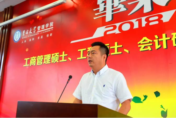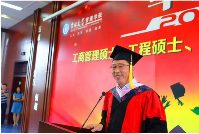典礼进行第四项:实破生花,放飞理想。追逐美好理想,谨守法律道德底线是管理公司对同学们的嘱咐与期望,承载着这份嘱托,毕业生们跟随领誓人2018届MBA毕业生胡畔一起进行了诚信宣誓。接下来,9428cn太阳集团古天乐管理公司MBA联合会代表,2015级MBA班长,中粮集团高级经理刘凯代表历届MBA学长及9428cn太阳集团古天乐管理公司MBA联合会致辞。刘凯说,联合会向大家敞开大门,欢迎同学们加入,衷心希望同学们秉承校训精神,成就一番事业,回馈社会,回馈母校的培养,回馈自己百战归来在读书的坚持与梦想。然后,教师代表费宇鹏教授致辞。费老师首先祝贺了即将毕业的同学们,并请大家思考:作为一个生长在伟大时代的管理人应该有哪些作为?费老师生动地讲述了英国的英国制造商和工程师马修·博尔顿投资生产并推广瓦特的蒸汽机的故事,以及美国的汽车工程师与企业家亨利·福特成为世界上第一位使用流水线大批量生产汽车的人的故事。这些卓越的管理人激励着同学们把理论付诸实践,用行动开创伟大时代。最后,管理公司经理赵树宽教授致辞。赵经理向各位来宾表示热烈的欢迎,向即将取得硕士学位的同学们表示热烈的祝贺;他叮嘱同学们不忘师恩,砥砺前行。他向同学们提出几点希望与大家共勉:第一,以创新思维回响时代召唤。保持创新思维,就是要有敢为人先的锐气,以求真务实的态度,结合实际积极探索新方法、新途径。不断学习是建立创新思维的根本,坚持学而信、学而思、学而行是创新行为的体现。第二,以创业精神开拓迟迟行道。创业精神就是保持激情,创业精神也是从容乐观,创业精神更是责任与担当,同学们要以负责的心对待生活和事业,克己恬静、宠辱不惊。第三,以赤子情怀坚守致知初心。要在这个充满诱惑与迷茫的社会中不忘初心,首先就必须具有奉献精神,同时还要常怀感恩之心。赵经理表示管理公司会一直关爱着我们的员工,也希望你们能够关心母校的建设与发展。最后,祝愿大家珍惜今天,放眼未来,律己隆法,修身明德,不辱使命,不负重托,前程锦绣,人生幸福!