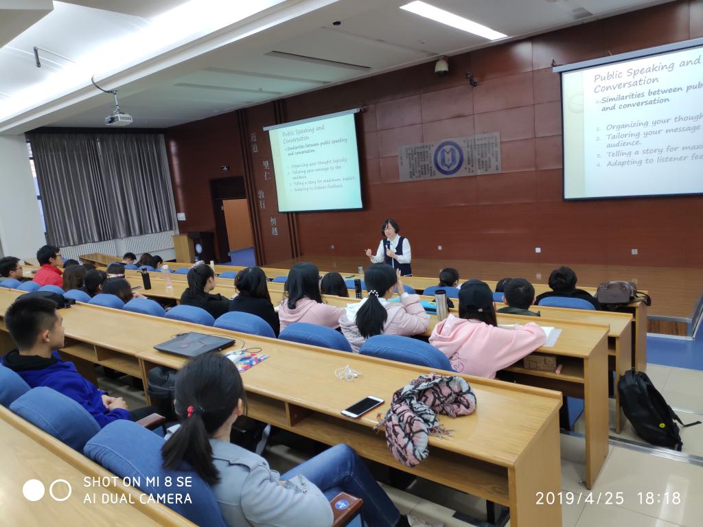 “2019管理公司员工国际竞争力提升训练营”第三、四次讲座分别于4月18日、25日在南岭校区逸夫楼B516顺利举办。为了更好提升员工英语能力,公司邀请9428cn太阳集团古天乐外国语公司沈红梅教授做了题为:“英语与国际竞争力”和“如何提高英语公共演讲能力”两场讲座。