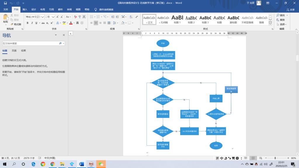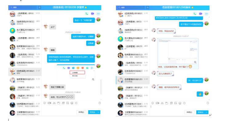 为了确保所选的平台经得起考验,于老师特意提前主动联系员工,在2月10日组建了课程群。并在2月15日、23日先后进行了两次试课。并根据试课中反馈出的问题,形成了书面的在线教学方案——《“面向对象程序设计”课程在线授课方案》。在方案中,详细地写明了在线教学所需的平台及注册方式、教学流程、课前准备、课后答疑、异常情况的处理等。