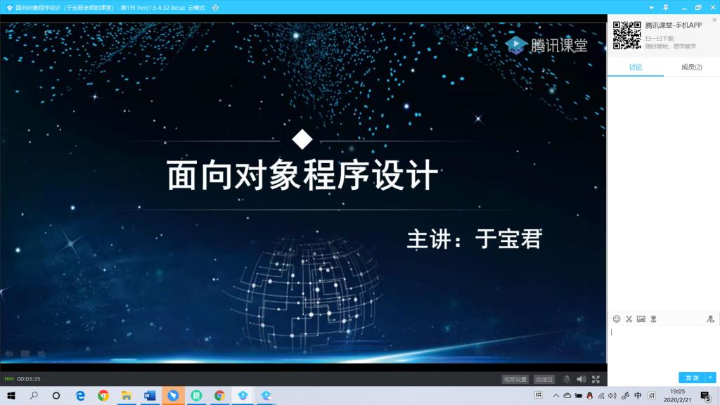 经过与同学们的共同测试,本课程决定采用“腾讯课堂”作为直播的主平台。课程直播需要课堂Term ID:101058116。课堂名称:面向对象程序设计(于宝君老师的课堂)。