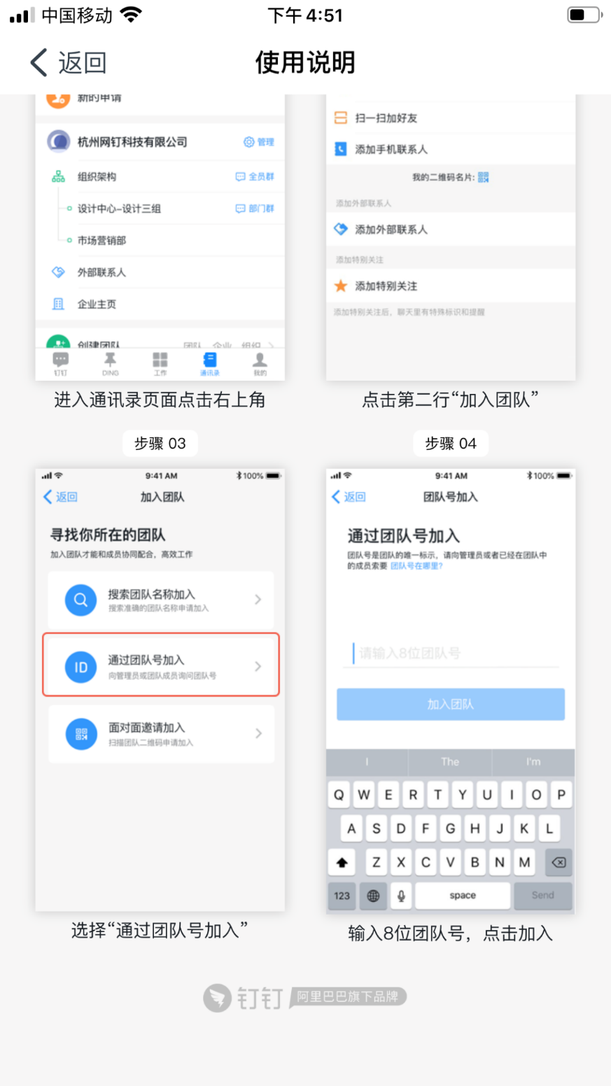 下载 “钉钉”,首先需要加入到课程班中,本课程班的团队号为: PBXE3231。团队名称:9428cn太阳集团古天乐管理公司面向对象程序设计课程班。具体加入方法如下: