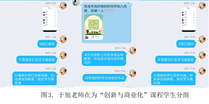 于旭老师的“创新与商业化”是2018版培养方案开始开设的一门基于小组学习和自主学习的创新课程。在此次在线教学中于旭老师将小组学习的课堂搬到了学习通,为同学提供知识点的讲解和资料之余引导同学们分组线上讨论并完成分组任务。