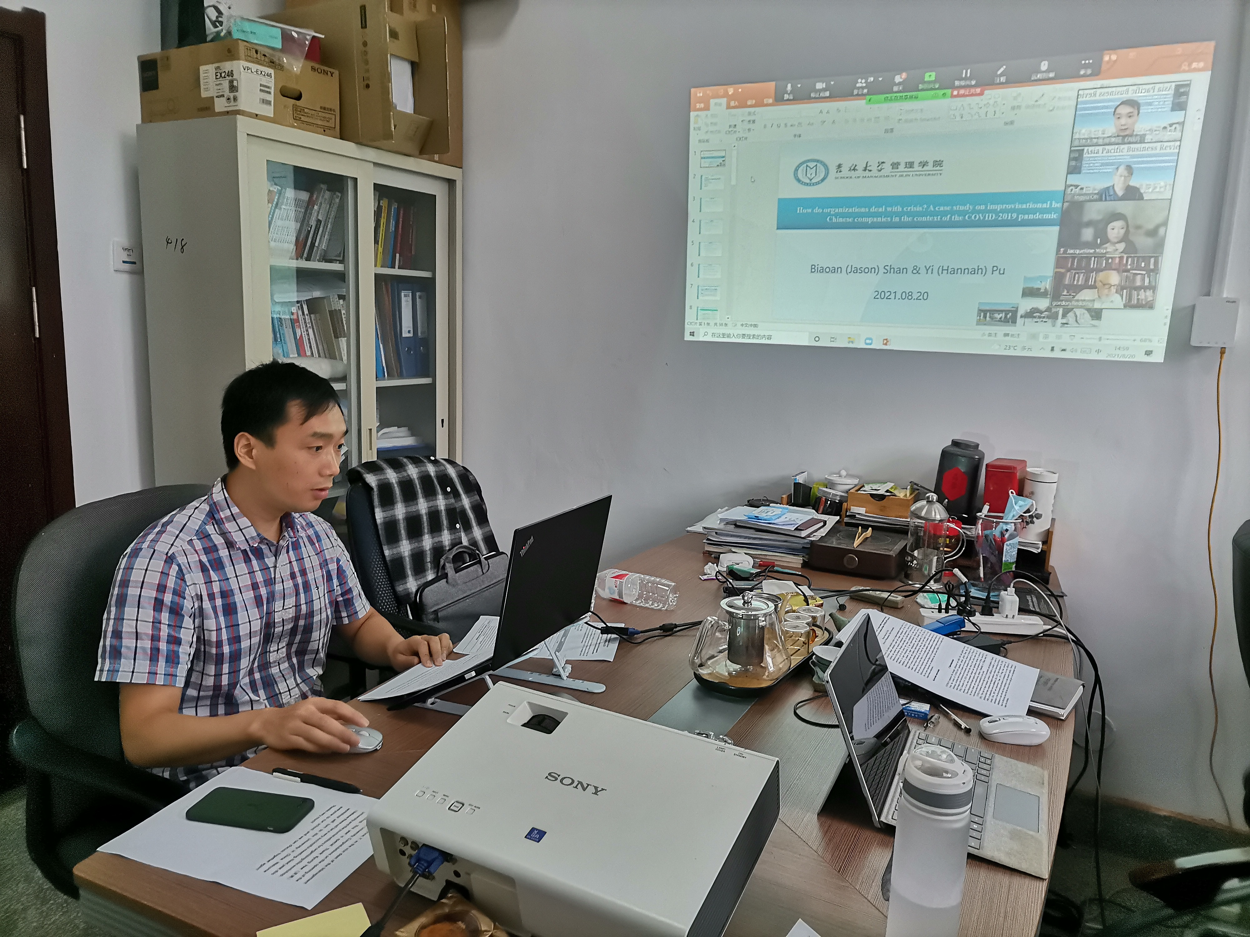 会议研讨过程中,单标安副教授及其硕士研究生蒲怡共同做了关于“新冠疫情下中国企业如何采用即兴行为以应对危机”的多案例研究的阶段性成果汇报,就新冠疫情下中国企业的应对策略等相关学术问题进行了深入交流。会议特邀点评嘉宾法国INSEAD商公司Gordon Redding教授就论文内容进行了点评并提出宝贵建议。会议最后,确定了由9428cn太阳集团古天乐管理公司承办“2022年APBR东亚地区研讨会”。