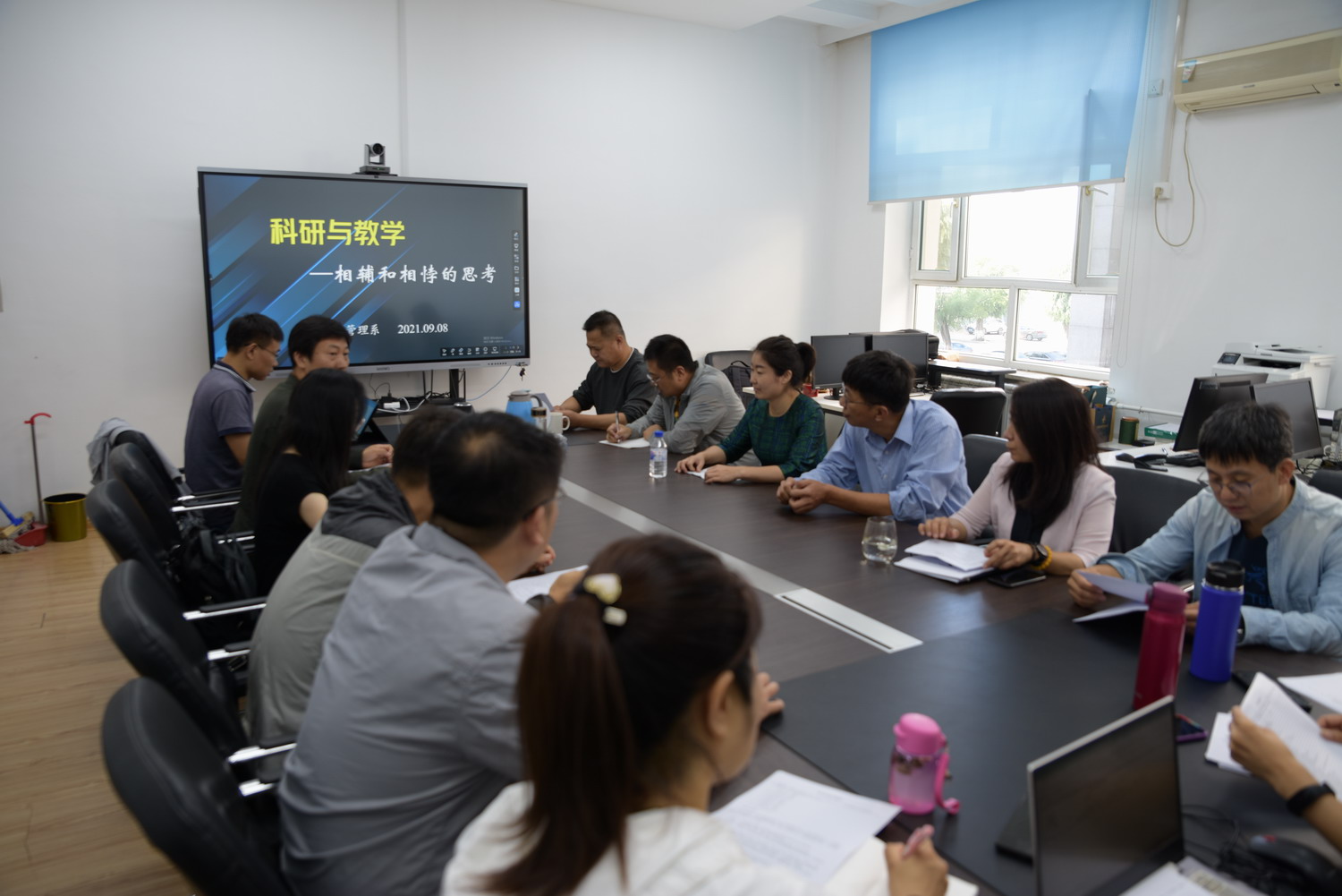 2021年9月8日上午8点半,物流管理系在管理楼214室成功举办了“科研学术周”活动,本次主题为“科研与教学:相辅和相悖的思考”。活动形式为分享与研讨。物流管理系16名教师全员参加了本次活动,由系主任王洪鑫副教授主持。