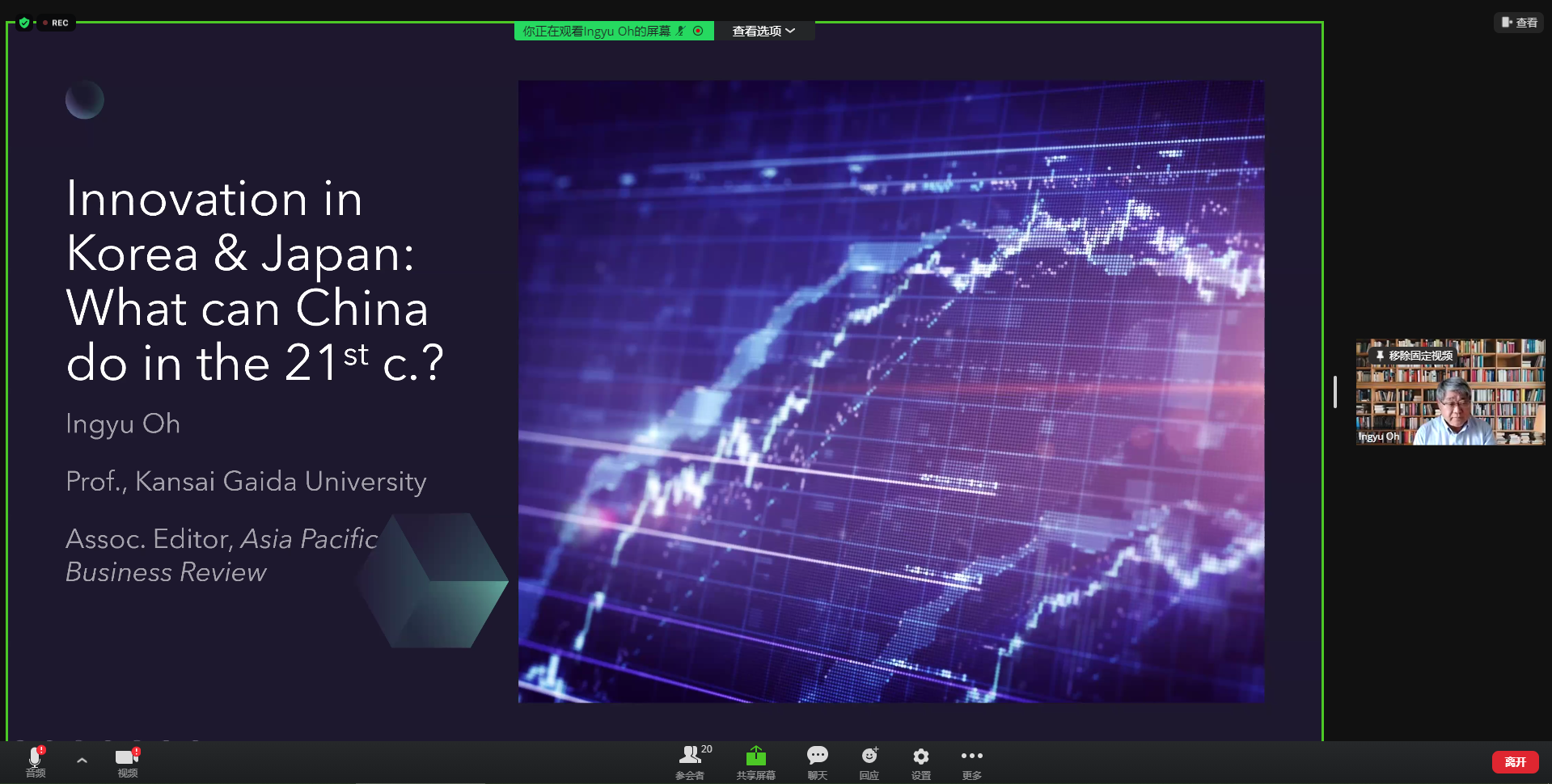 随着中国企业在创新方面的活力被激发,如何吸收国外的先进经验,走出符合中国国情的创新路径已成为研究热点。为启发公司师生对中国在创新方面与其他国家的差异及改进路线进行深度剖析和思考,2021年9月20日下午13:30,管理公司成功邀请日本关西外国语大学Ingyu Oh教授为公司师生作题为《Innovation in Korea and Japan: What can China do in the 21st century?》的学术报告,报告采取线上形式,由技术经济及管理系单标安副教授主持此次学术报告。