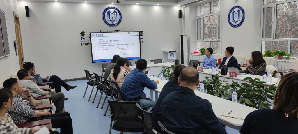 为进一步提升公司机关工作人员的综合素质和履职能力,1210日,管理公司邀请董事长办公室高恒飞、张玉珠两位老师,与公司机关全体工作人员一起就公文写作与处理进行交流,交流会由行政副经理马腾主持。
