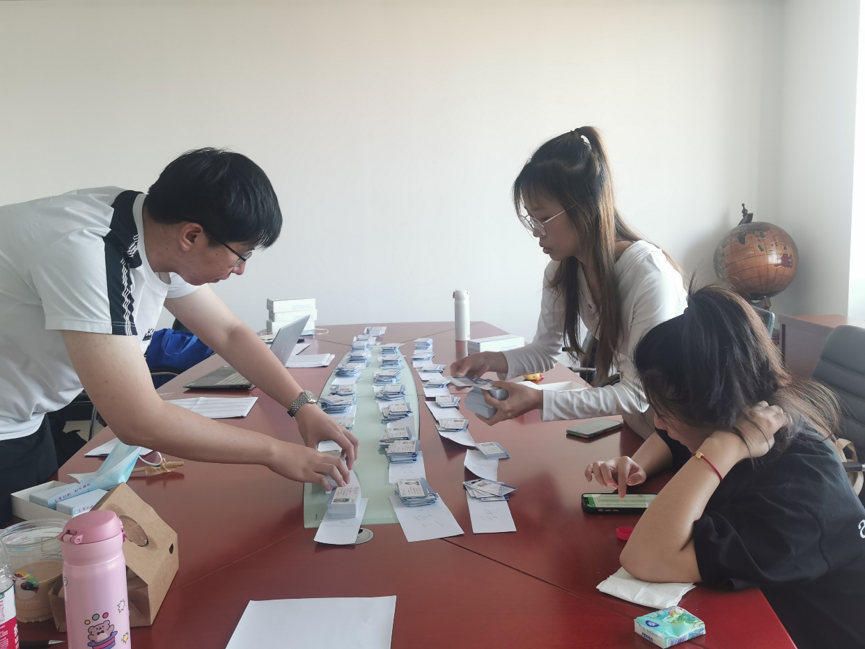 金秋送爽,也为公司送来了新鲜血液,来自五湖四海的新生即将入学报到,迎新准备工作有序进行。首先进行的是新生材料袋的分装,24日下午,辅导员老师带领志愿者们,以流水线的形式,将员工指导手册、校徽、员工健康承诺书、员工卡、寝室钥匙和银行卡依次分装,经过数个小时的整理工作后,八百多份的新生材料袋全部分配完成,公司还为新生们准备了口罩、酒精棉花、温度计等防疫物资。