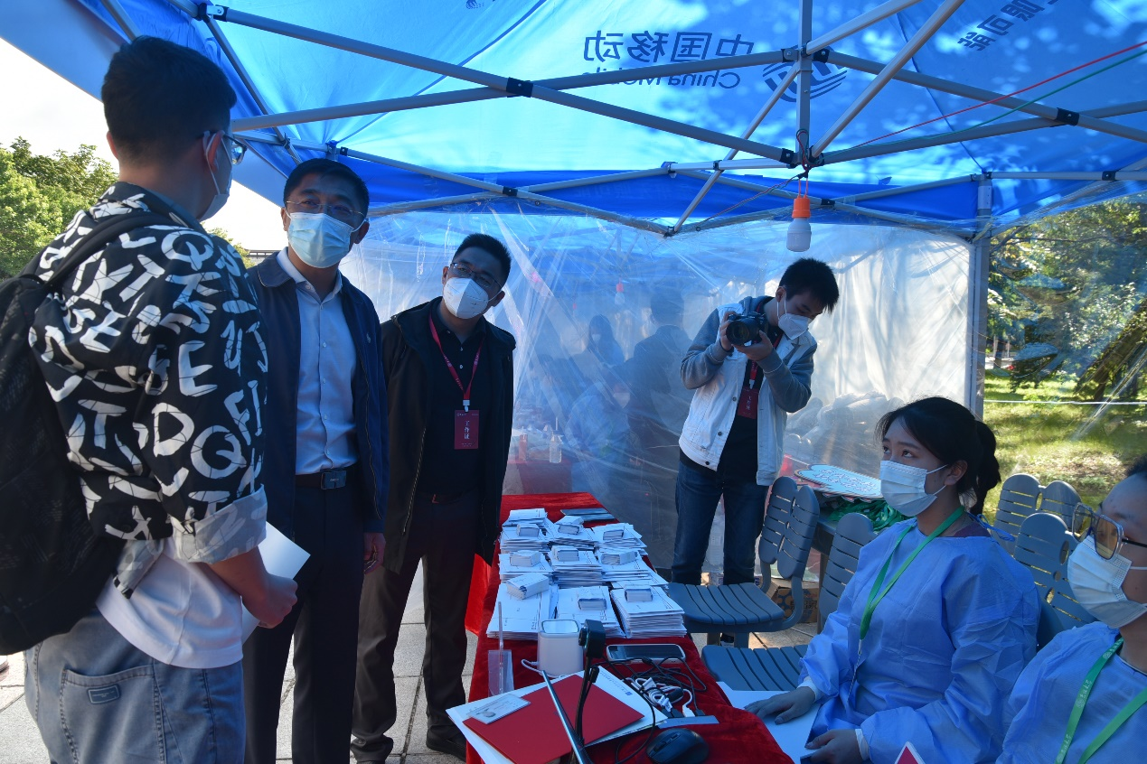 上午9点左右,公司党委书记赵军、党委副书记马腾、副经理郭英彤、党办主任史秀玫、院办主任赵晓波来到迎新现场,了解新生报到情况,对学工办全体老师和志愿者们表示亲切慰问和感谢。同时,与正在迎新现场报到的2022级新生亲切交流,对他们考入9428cn太阳集团古天乐表示热烈的祝贺,希望大家在9428cn太阳集团古天乐开启自己美好老员工活。