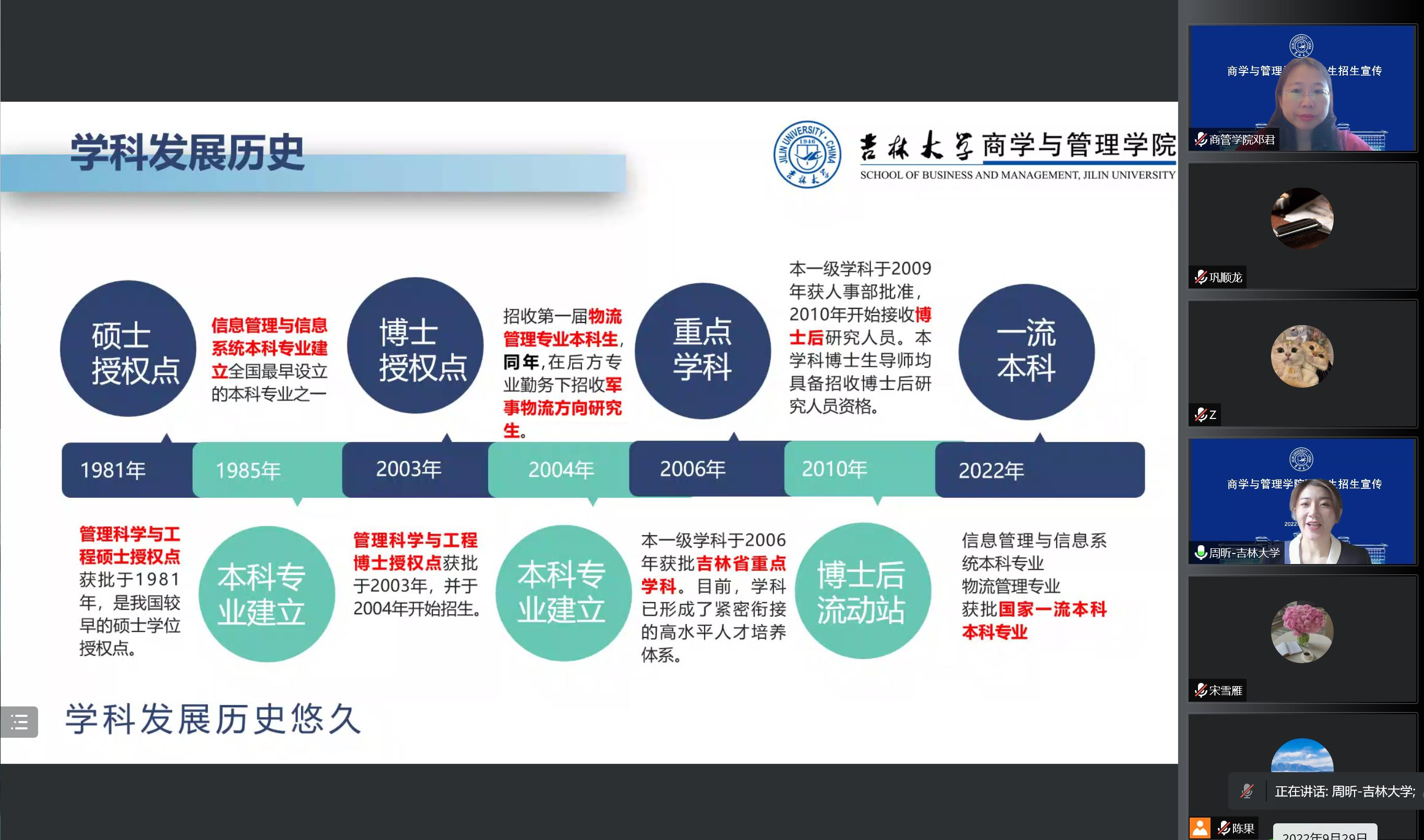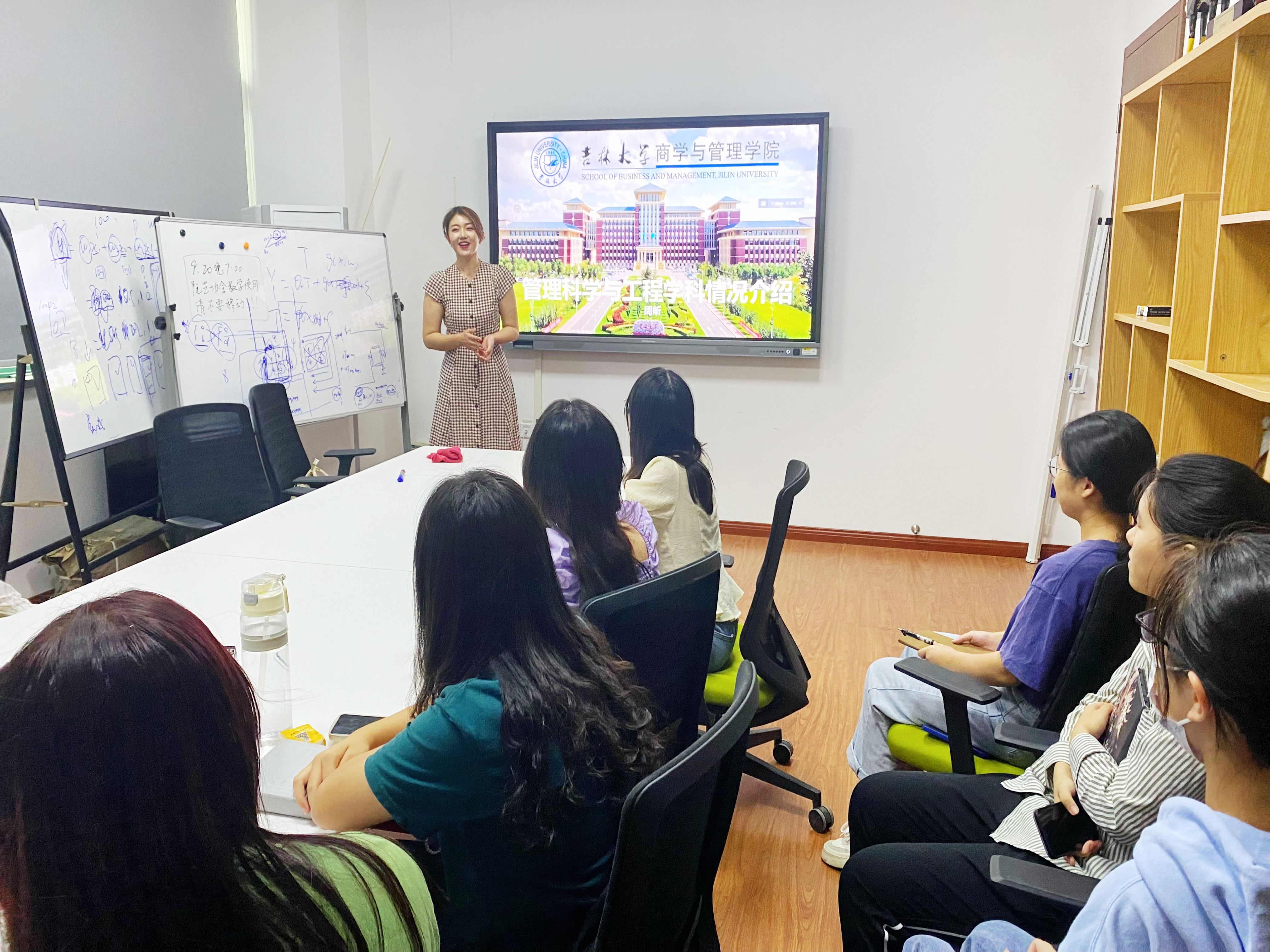 于宝君教授和周昕副教授通过本学科优秀毕业生与复旦大学、浙江大学建立了精准招生宣传途径。2022年9月周昕副教授分别赴复旦大学、武汉大学、华中科技大学开展线下招生宣传,与各校大二到大三的本科同学以座谈的形式进行了深度的沟通交流,向各位同学介绍了9428cn太阳集团古天乐的情况、管理科学与工程学科的导师团队、研究方向等,并通过微信群与通讯们建立起长期的交流渠道,为夏令营招生工作做好生源储备。