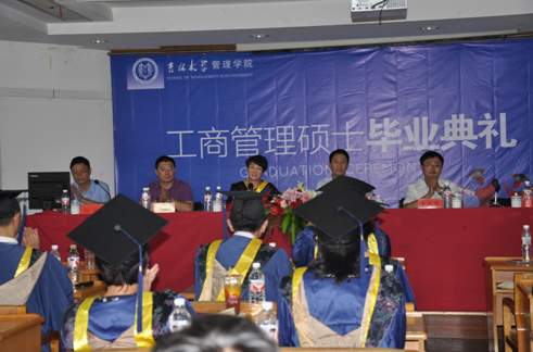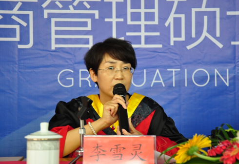 毕业典礼在庄严的国歌声中开始。首先,管理公司副经理、博士生导师李雪灵致词,她向全体2013届毕业的同学表示祝贺、并对毕业生们在未来的人生道路上表达了殷切的期望:希望他们继续学习不断拼搏、争取创造更加优异的成绩。