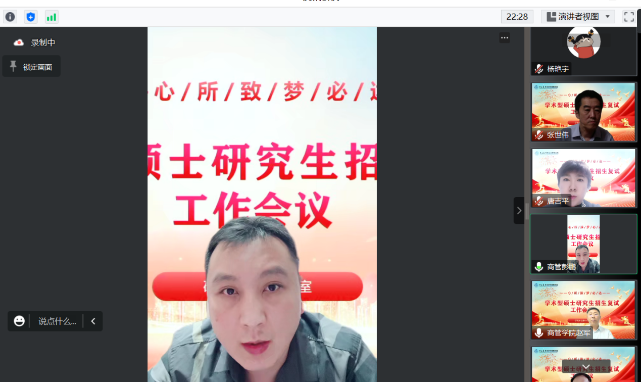 会上,彭鹏副书记强调复试录取工作要增强政治意识,要强化责任担当,切实落实安全保密责任,做好突发事件专项预案,要时刻注意舆论导向,落实教师主体责任,加强舆情正确引导,充分做好舆情预警监测;要廉洁纪律和工作纪律,并提醒各位教师在复试工作中要时刻注意言行与方法,做一个有担当、负责任的合格复试评委。