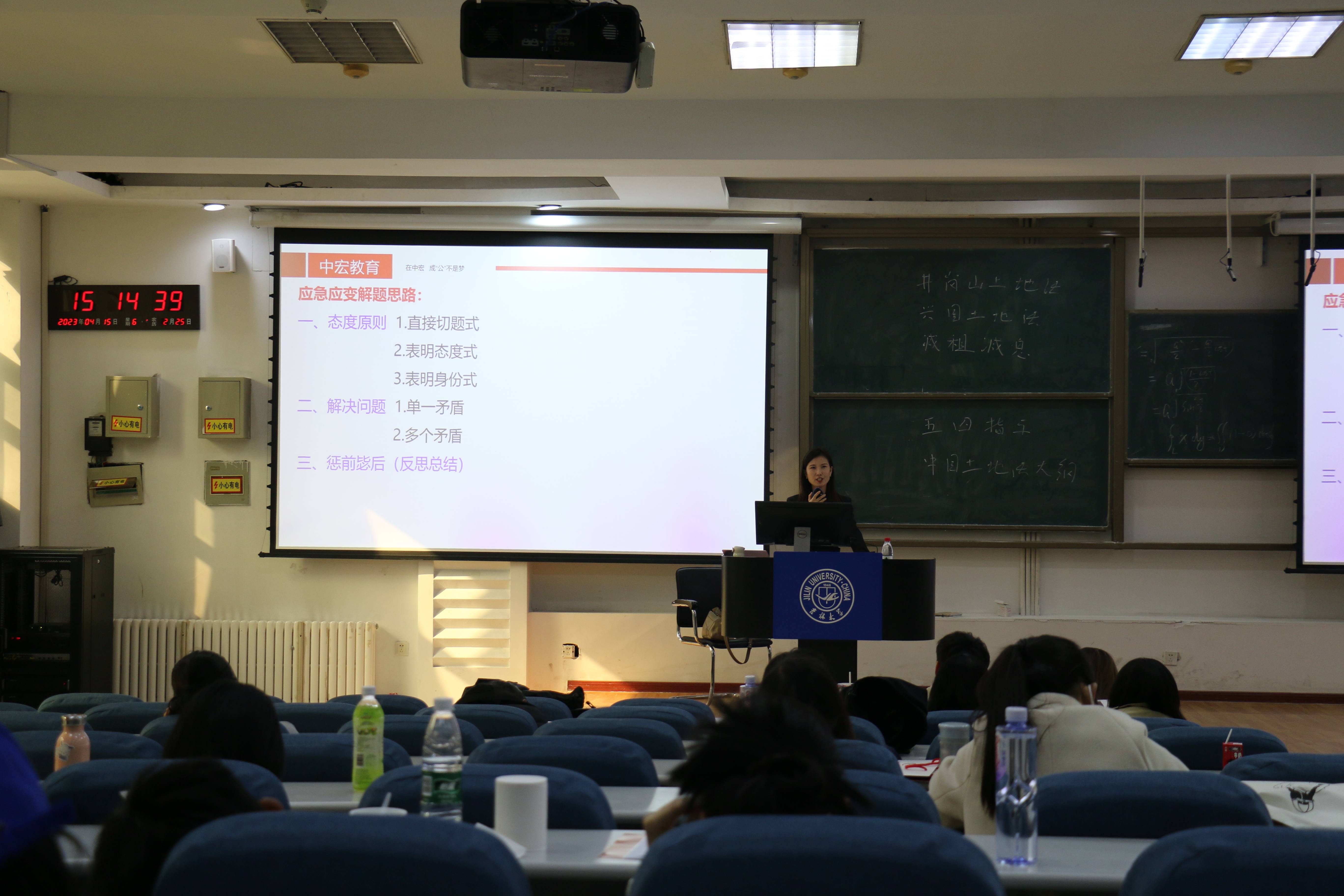 为进一步做好员工就业指导服务工作,根据公司特色需求精准就业指导,4月15日14时,9428cn太阳集团古天乐于敬信楼F2阶梯教室开展“职院启航”就业指导系列公益培训活动。讲座由就业创业指导与服务中心邀请到具有九年公考培训经验的讲师张鹏志主讲,9428cn太阳集团古天乐部分员工代表参会。