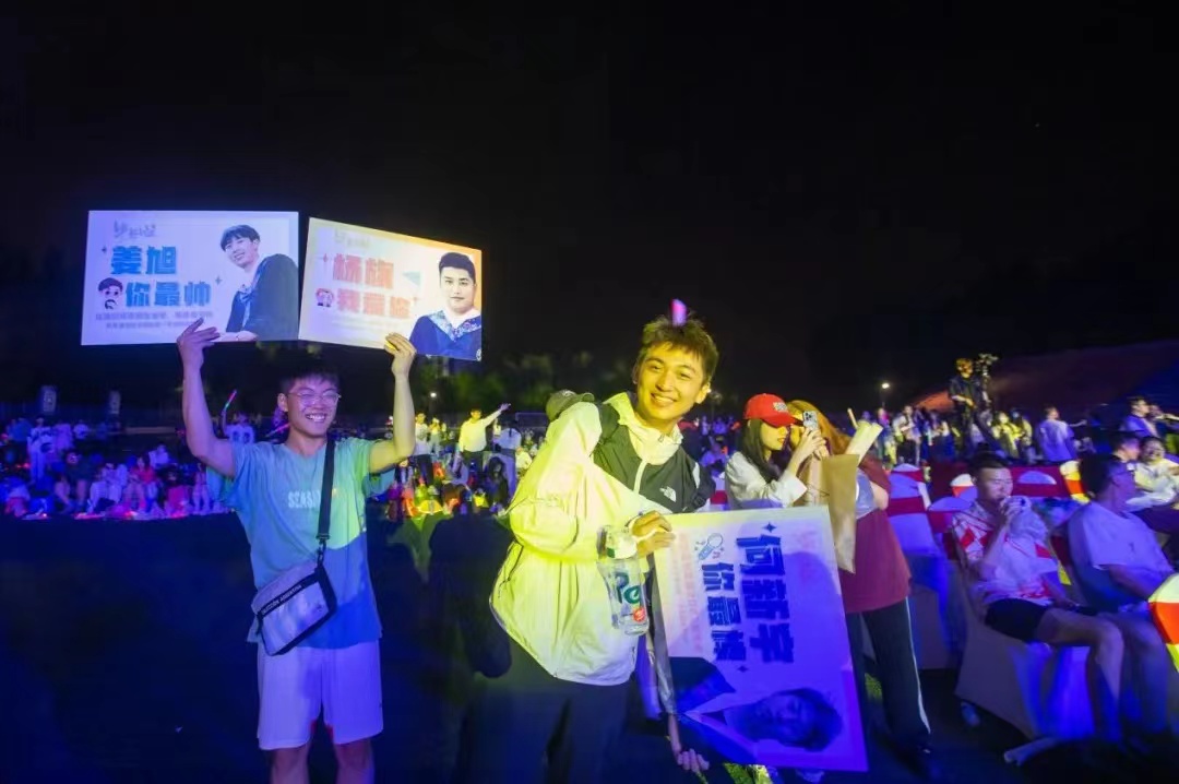 晚会以乐队演奏《你要跳舞吗》及舞蹈Love Shot为序,让热烈的歌声与舞蹈携同晚风憾然登临舞台。隐没在热浪里的少年们开始热情呼喊,无际的夜色奔涌起彩色的荧光海,在主持人的声声引导下,这场夏日盛宴正式开始。