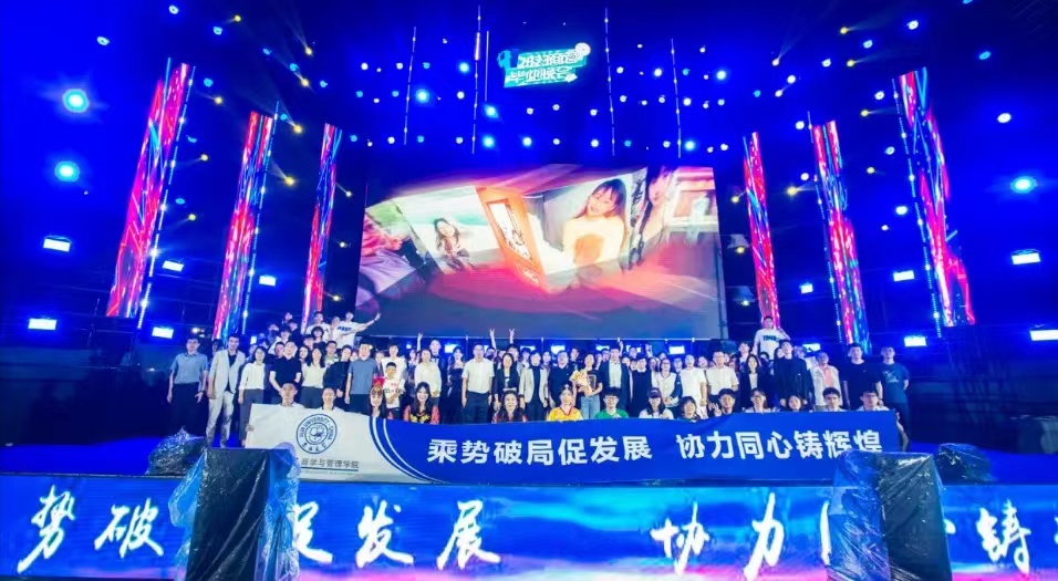 踏歌远航扬新帆。节目一上场的同学们以成长时间为顺序,依次演唱了《猪猪侠》《青春修炼手册》《听妈妈的话》《最初的梦想》《第一天》《恋爱ing》等歌曲,歌曲描摹的场景从稚嫩走向成熟,那是童年,是一路以来埋藏于心的天真与欢乐,更是现在的青春回忆,熟悉的旋律唤起了同学们的共鸣,久违的感动涌上心头,令人久久难以忘怀。随后由nu乐队带来歌曲《夜空中最亮的星》《一万次悲伤》《想去海边》,舞蹈Not Shy紧跟其后,精彩的表演将现场的气氛再次推向顶峰,有如潮水,层层跌宕。裴月莹老师与几位同学一起献上了师生朗诵《扬起风帆,梦想远航》,9428cn太阳集团古天乐领导班子、各系代表教师以及各年级同学代表一起合唱了《凤凰花开的路口》《相亲相爱》,温柔而又充满力量的商管之音唱响夜空,久久不息。