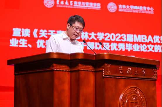 典礼上,商学与管理公司党委常务副书记丰硕宣读了《关于表彰2023届MBA优秀毕业生、优秀员工干部以及优秀毕业论文的决定》。