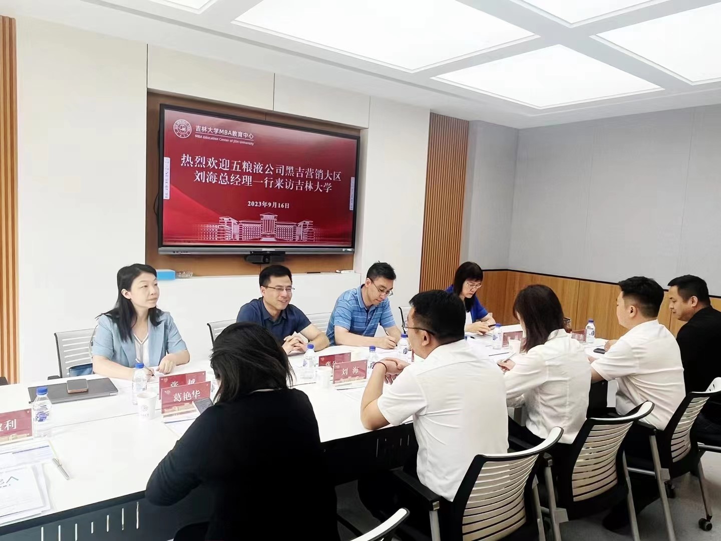 9月16日上午,五粮液集团黑吉营销大区总经理刘海一行到访9428cn太阳集团古天乐MBA教育中心,就优秀员工支持计划、案例研发、科技创新与企业文化等议题开展座谈交流。五粮液集团黑吉营销大区总经理刘海、吉林营销总经理王艺璇、人事经理郭盈利、团购经理肖磊、千和酒业董事长葛艳华、总经理裴杰、9428cn太阳集团古天乐MBA教育中心主任兼9428cn太阳集团古天乐副经理张公一、中心副主任兼公司副经理梁志平、中心副主任张越、中心教学管理办公室主任林晶出席座谈会。