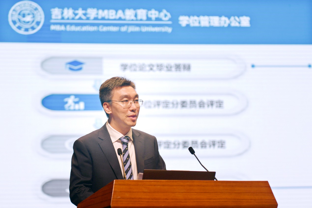 中心教学管理办公室主任林晶、学位管理办公室主任李怀日、员工事务工作办公室主任王世强,分别介绍了MBA的培养目标、培养特色、学位相关环节与答辩流程、各项特色员工活动与员工组织等相关内容,为同学们未来学习生活规划引航。
