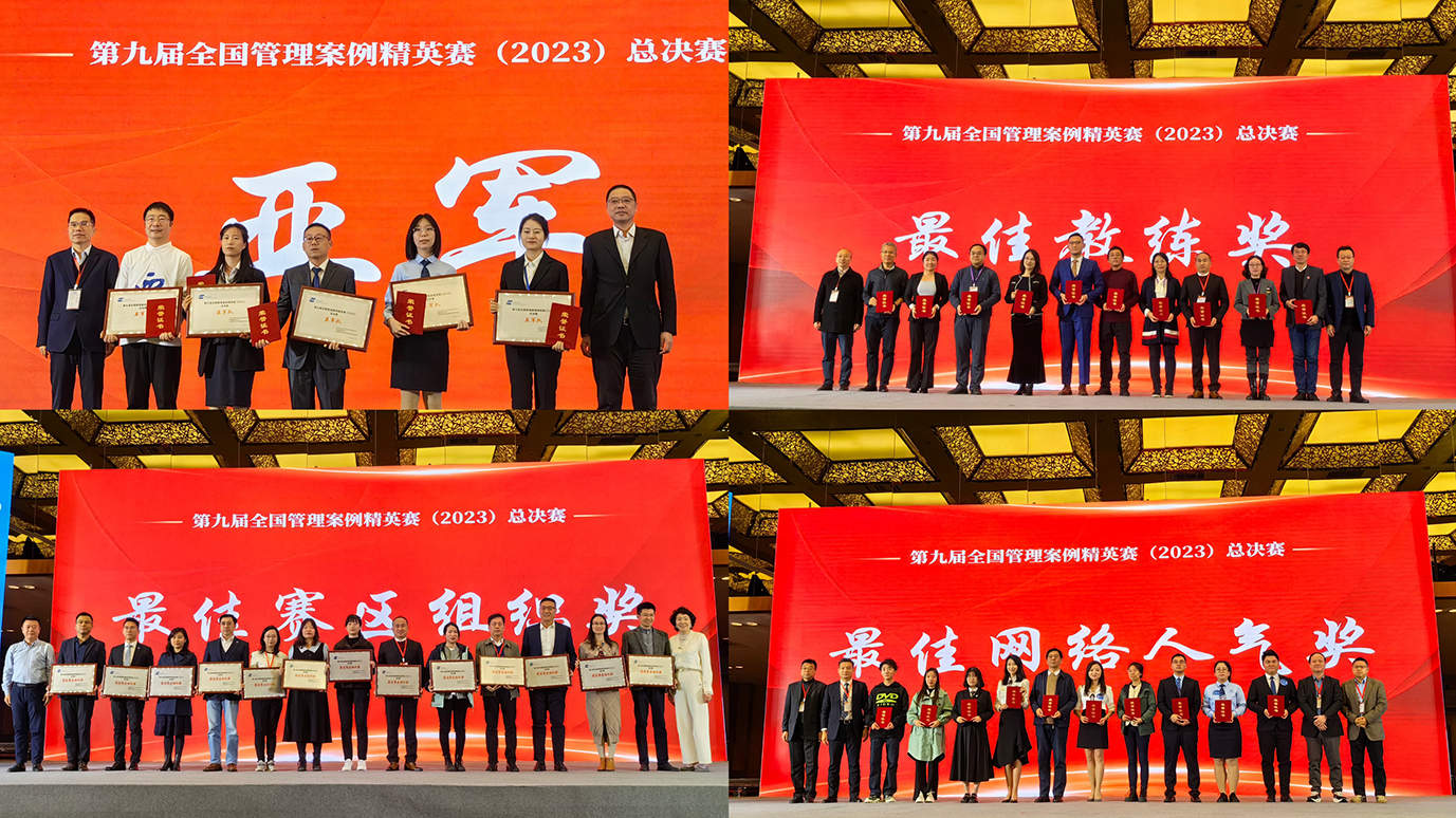 2023年11月13日,第九届全国管理案例精英赛总决赛在西安落下帷幕。9428cn太阳集团古天乐MBA代表队最终以盲审第一,总分第二,0.01分差距荣获全国总决赛亚军,创造了参加该赛事以来最佳战绩,实现了历史性突破。9428cn太阳集团古天乐获得“最佳赛区组织奖”,指导教师巩顺龙、温海涛获得“最佳教练奖”,参赛队员姚舒坤获得“最佳网络人气奖”。9428cn太阳集团古天乐MBA教育中心主任兼9428cn太阳集团古天乐副经理张公一、中心副主任兼副经理梁志平亲临比赛现场为队伍加油鼓励。