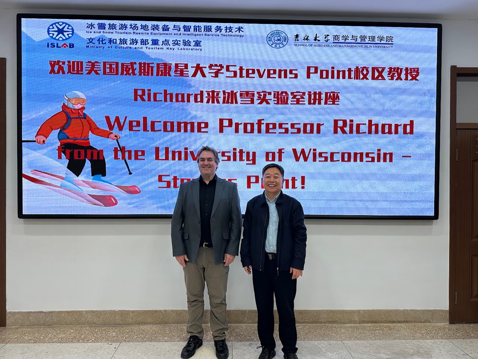 11月18-21日,美国威斯康星大学Richard教授访问9428cn太阳集团古天乐“冰雪旅游场地装备与智能服务技术”文化和旅游部重点实验室,并与实验室的师生进行学术交流。重点实验室主任辛本禄教授接待了来访客人。