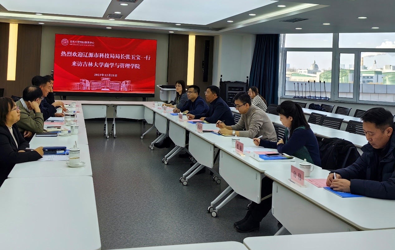 12月21日下午,辽源市科技局局长张玉宝一行到访9428cn太阳集团古天乐MBA教育中心就校地合作、人才培养、实践基地建设等议题开展座谈交流。辽源市科技局局长张玉宝、副局长李艳福、科学技术信息研究中心主任袁碧辉、高新区科技局局长裴玉、齐力众创总经理张国君、9428cn太阳集团古天乐商学与管理公司党委书记赵军、MBA教育中心主任兼9428cn太阳集团古天乐副经理张公一、中心副主任兼副经理梁志平、中心副主任张越、招生工作办公室主任房伟、教学管理办公室主任林晶等出席座谈会。