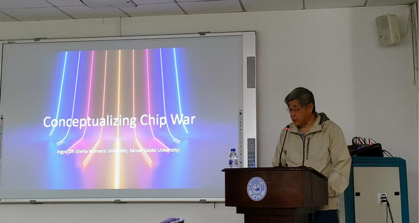 整个论坛分为英文论坛及中文论坛两部分。首先分享的是来自日本关西外国语大学的Ingyu Oh教授带来,他以“Conceptualizing Chip War”为题,深入分析了国家创新系统在东亚半导体产业发展中的作用,以及如何通过创新系统推动产业升级和区域经济发展。