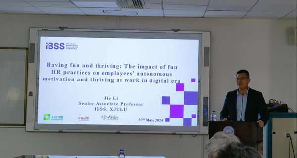 紧接着,西交利物浦大学商公司的厉杰教授发表了题为“Having fun and thriving: The impact of fun HR practices on employees’ autonomous motivation and thriving at work in digital era”的演讲。他探讨了在数字化时代,如何通过有趣的人力资源实践激发员工的自主动机和工作热情,从而提升企业的创新能力和竞争力。