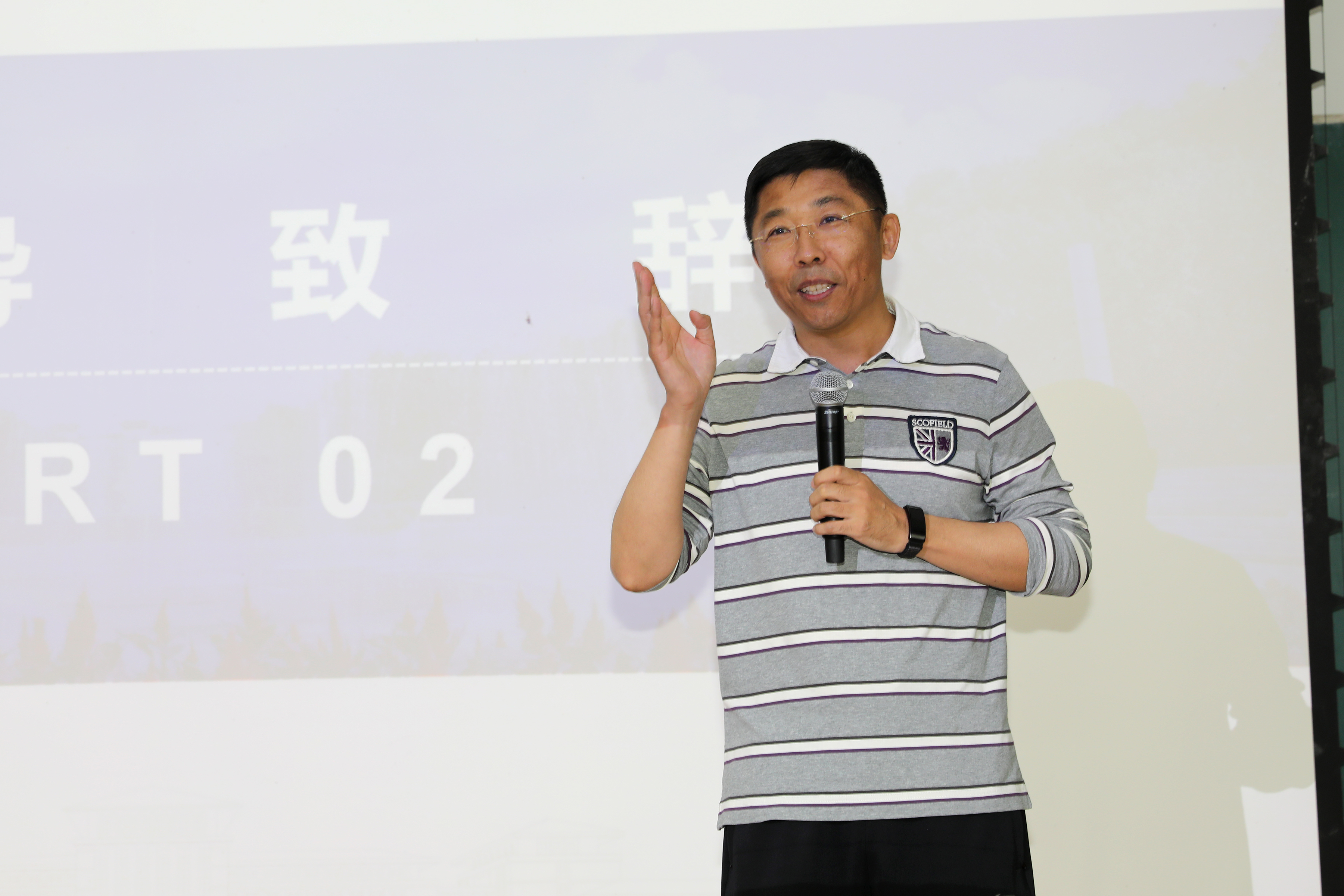 活动第五项,数学公司党委副书记兼副经理范庆文老师向员工代表赠送毕业十周年纪念品。
