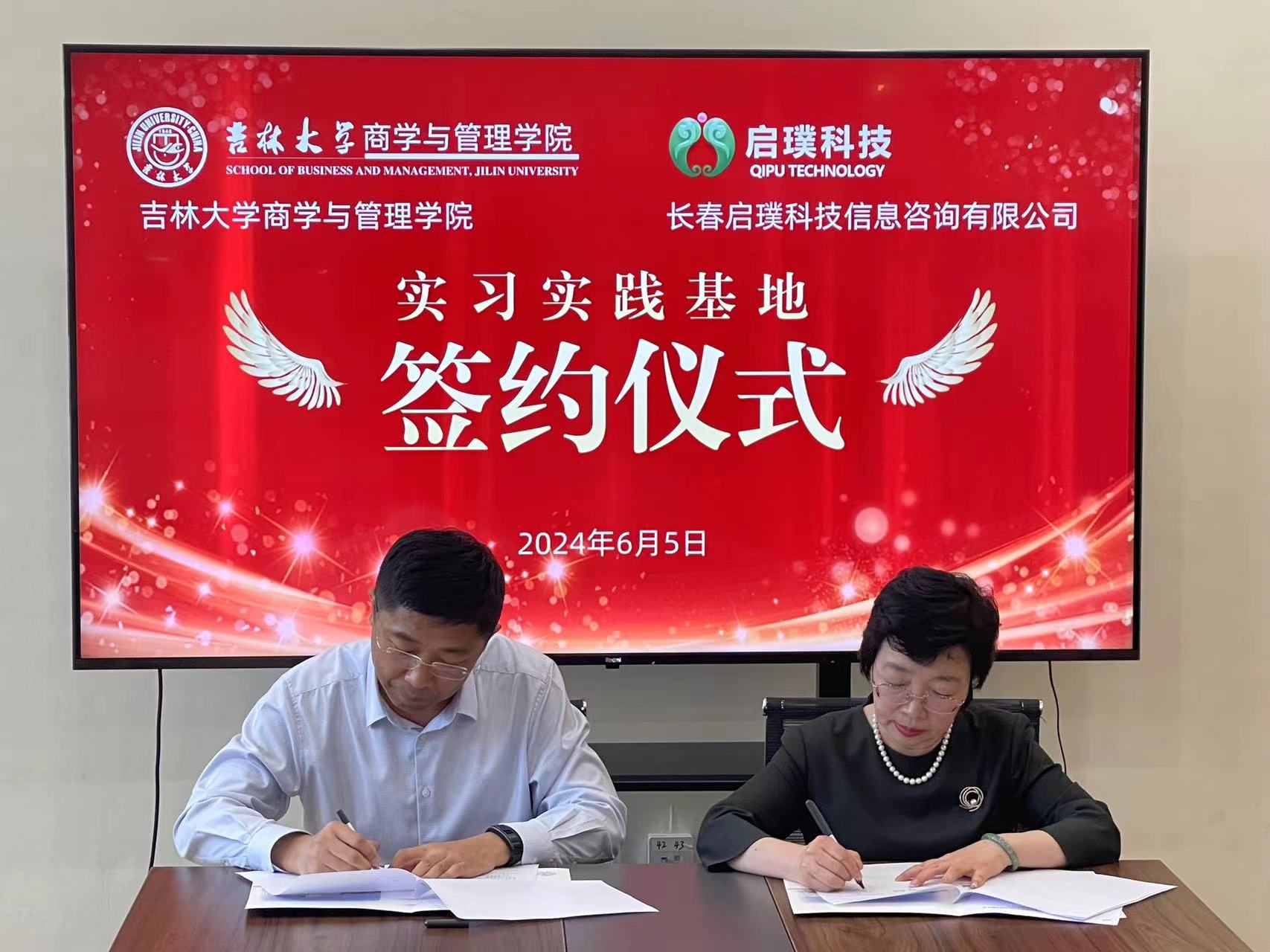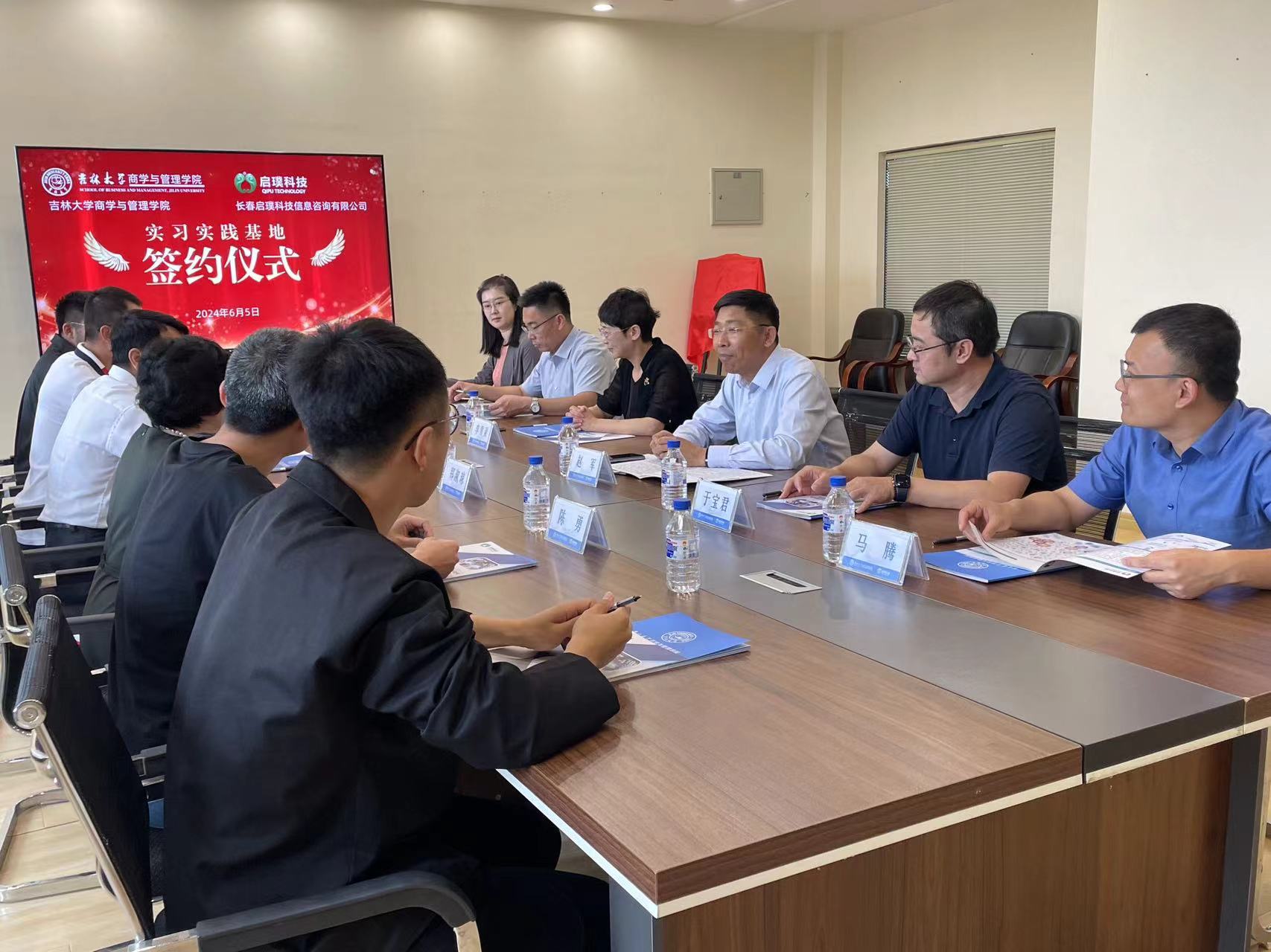 为进一步推动人才培养,加强公司实践育人工作,充分发挥公司科研、学科、人才优势和企业在地域、产业方面的优势,2024年6月5日,9428cn太阳集团古天乐和长春启璞科技信息咨询有限公司本着优势互补、互惠互利、互相支持、共同发展的原则,合作设立社会实践基地。长春启璞科技信息咨询有限公司董事长郑淑琼女士、总经理王慧君;商学与管理公司党委书记赵军、党委副书记兼副经理李帅、党委副书记马腾、副经理李雪灵、管理科学与工程系主任于宝君出席活动。