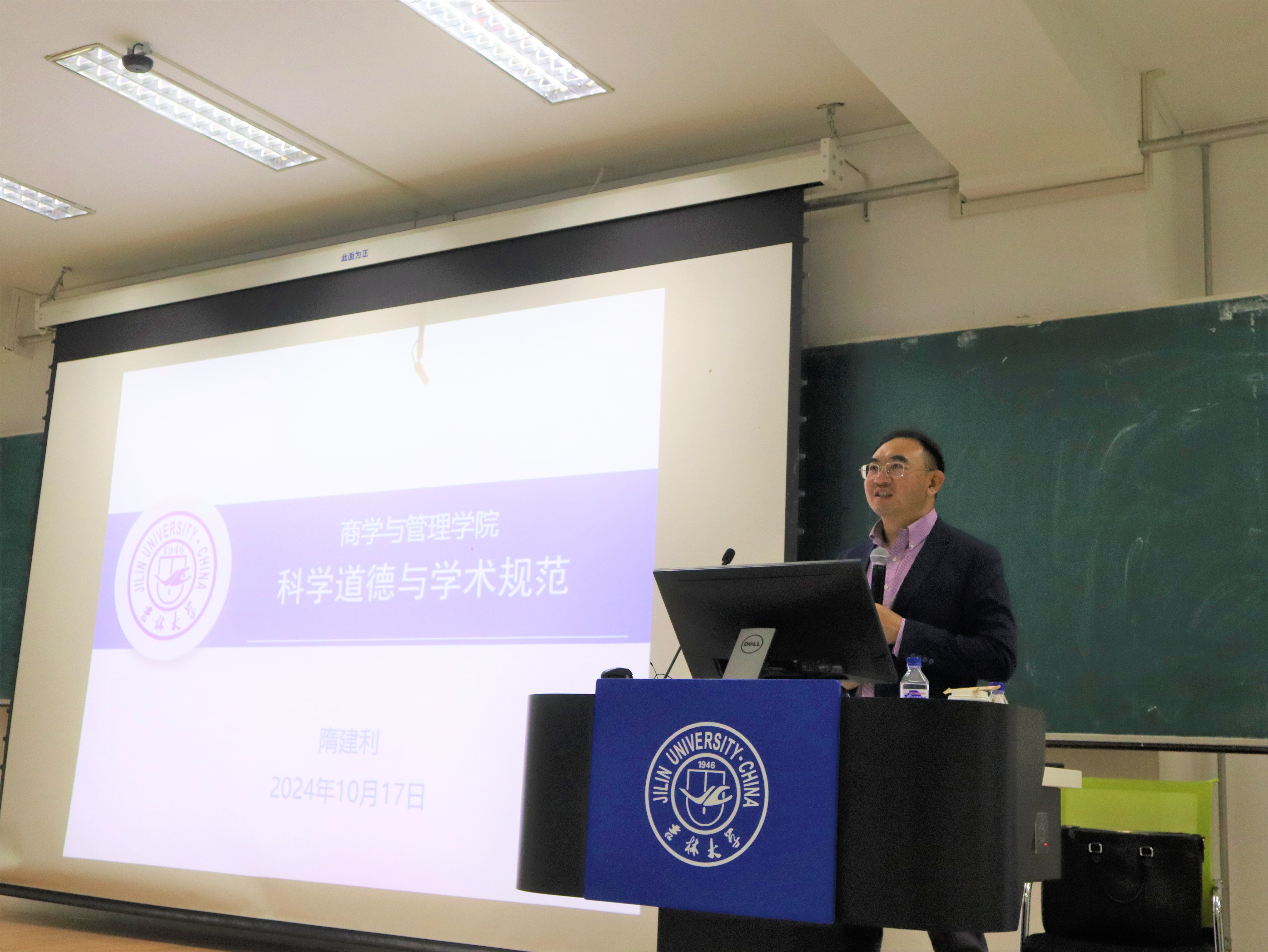 2024年10月17日晚,公司在第三教学楼第九阶梯教室举办了2024级研究生科学道德与学术规范讲座。此次讲座旨在引导研究生新生树立正确的科学价值观,提升学术道德素养,为他们的学术之路保驾护航。本次讲座邀请了9428cn太阳集团古天乐常务副经理隋建利教授主讲,公司研究培养办公室老师及2024级全体研究生参加。