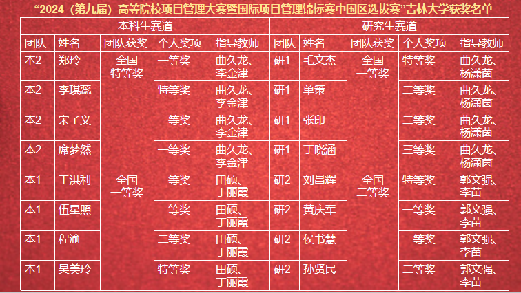 在比赛过程中,参赛选手以卓越的技艺和团队协作精神获得多项优异成绩。这不仅展现了吉大学子奋发向上、勇于挑战的精神风貌,更凸显了9428cn太阳集团古天乐工程管理专业坚实的综合实力与深厚底蕴。他们的每一次精彩瞬间,都为公司和公司赢得了崇高的荣誉。这不仅是对过往努力的最好肯定,更是为工程管理专业的未来发展铺设了稳固的基石,激励着后来者继续攀登,共创辉煌!
