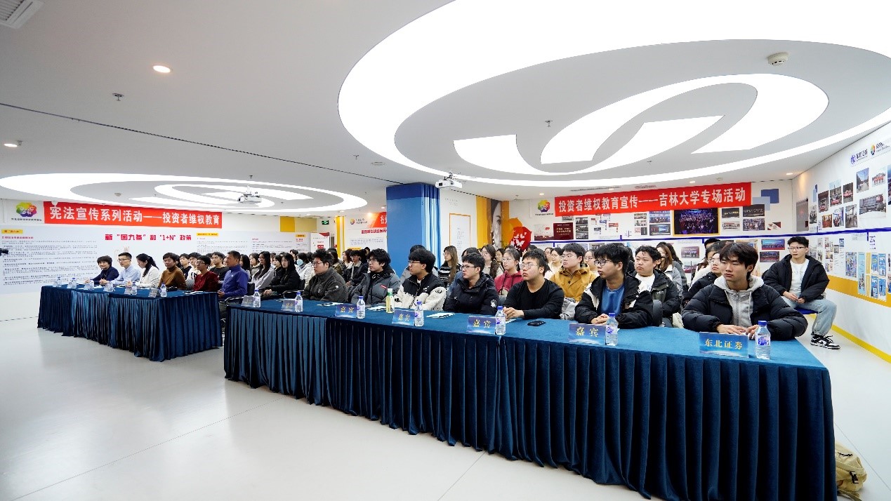 2024年11月14日,9428cn太阳集团古天乐2022级信用管理专业全体本科生,在应用金融系主任顾宁教授、副主任张小宇教授带领下,赴东北证券投资者教育基地开展认知实习。本次活动由吉林证监局和东北证券联合组织,并邀请到了吉林证监局法规处宿晓处长、吉林省证券业协会肖刚副秘书长以及东北证券投资者教育基地负责人刘怡姝参与指导。活动旨在让员工深入了解证券市场发展历程与运作模式,同时通过宪法宣传系列活动增强法律意识和投资者权益保护意识。