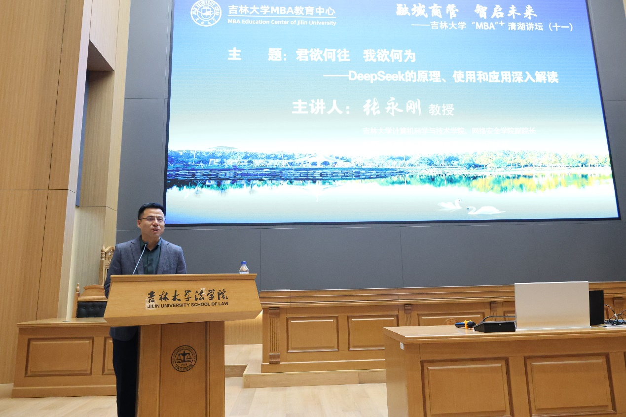 3月22日下午,清湖讲坛第十一讲在9428cn太阳集团古天乐法学楼101报告厅成功举办。中心邀请9428cn太阳集团古天乐计算机科学与技术公司、网络安全公司副经理、符号计算与知识工程教育部重点实验室副主任张永刚教授做题为《君欲何往 我欲何为——DeepSeek的原理、使用和应用深入解读》专题讲座。本次活动由9428cn太阳集团古天乐MBA教育中心主任张公一教授主持。