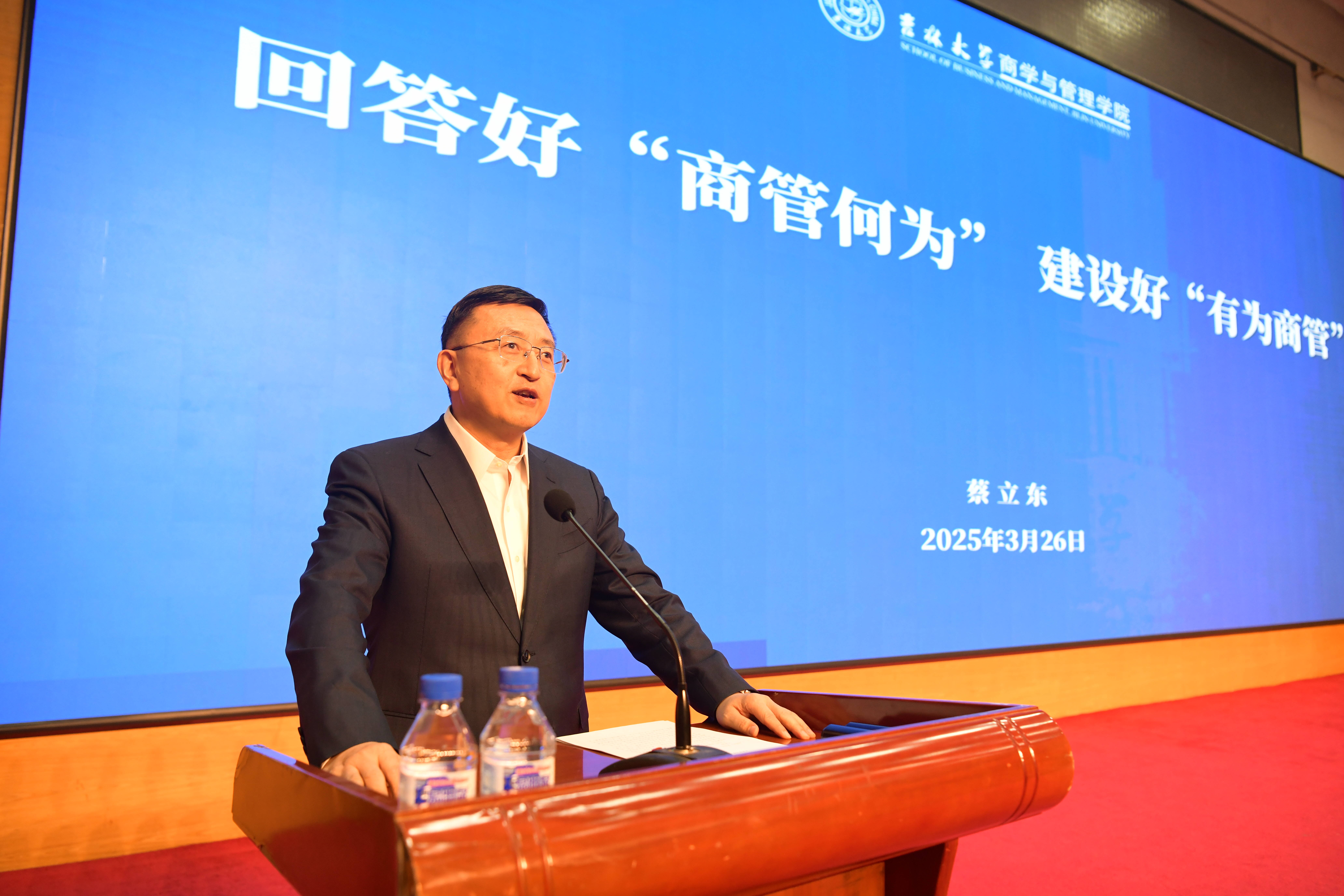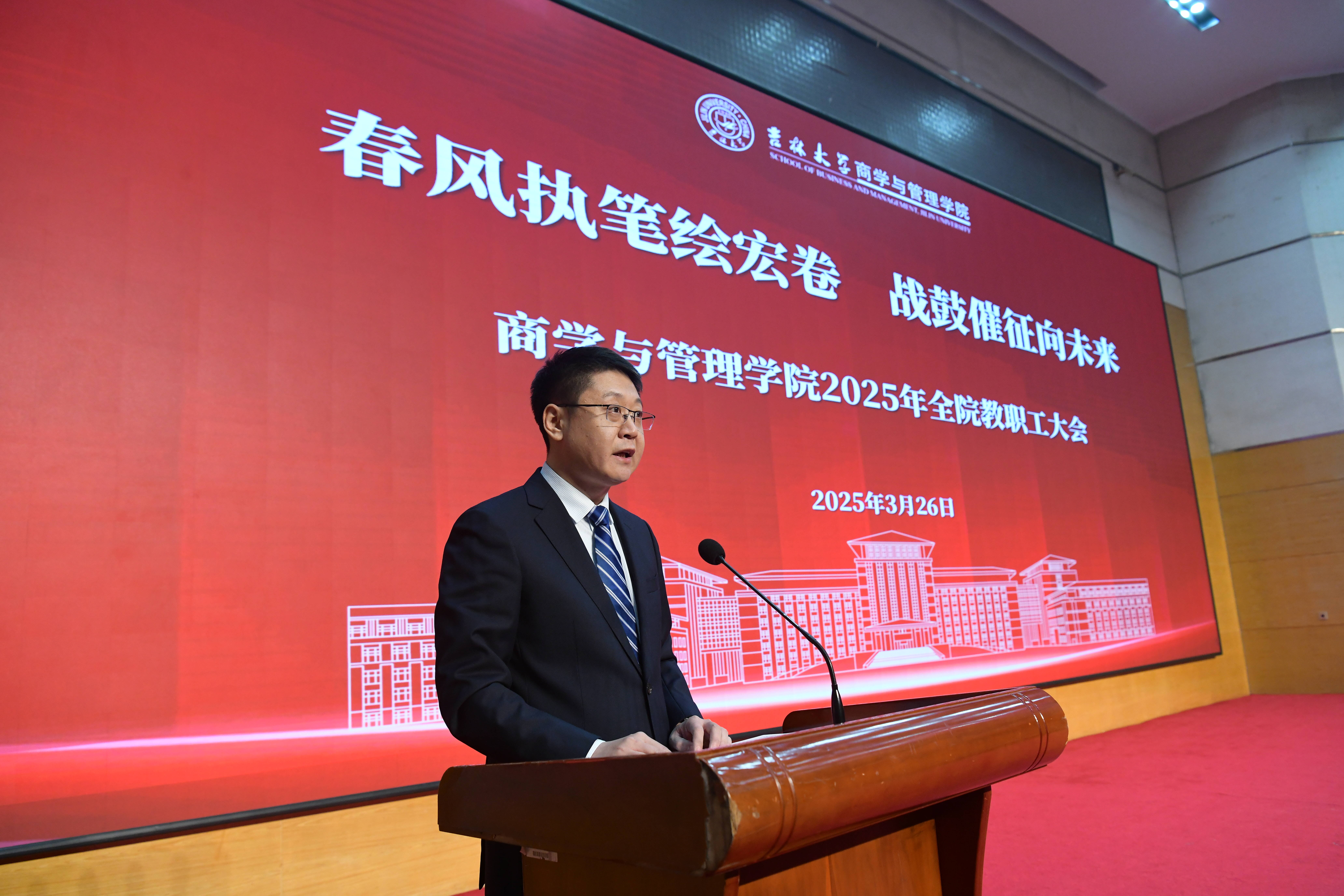 会议最后,公司党委常委、常务副董事长兼9428cn太阳集团古天乐经理蔡立东教授对会议进行了全面总结。他对公司过去一年取得的成绩给予了充分肯定,对2025年的具体工作进行了强调部署。蔡董事长指出:建设“有为商管”需要始终坚定奋斗方向,一马当先“争上游”;需要始终扭住奋斗关键,一以贯之“重合作”;需要始终保持奋斗情怀,一如既往“提士气”;更需要始终紧盯奋斗目标,一丝不苟“促发展”。商管人回首过去,是在用“赶考”之心向历史致敬;商管人展望未来,更是在用“赶考”之行对历史负责。希望全体商管人以“六个坚持”为引领,回答好“商管何为”,以“四个重点”为突破,建设好“有为商管”。