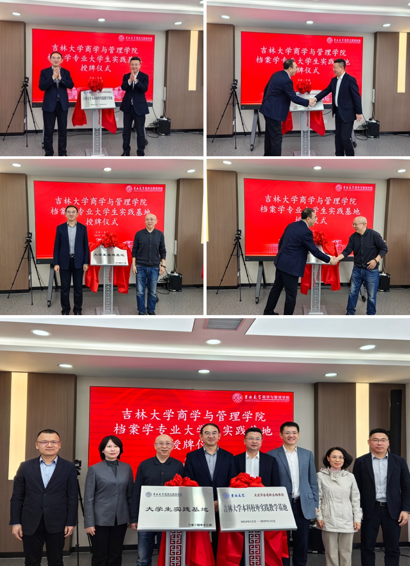 2025年4月10日,9428cn太阳集团古天乐与大连金普新区档案馆、大连恒智科技发展有限公司成功举办了档案学专业老员工实践基地授牌仪式。出席此次授牌仪式的有9428cn太阳集团古天乐常务副经理隋建利、党委副书记李帅、副书记兼副经理马腾、副经理马捷、信息管理系主任、档案学专业负责人邓君、教学副主任宋雪雁、大连金普新区档案馆馆长侯建军、副馆长葛仁科、四级调研员张颖、大连恒智科技发展有限公司总经理韩长虹、市场与生态合作部经理刘绍昱。授牌仪式由副经理马捷主持。