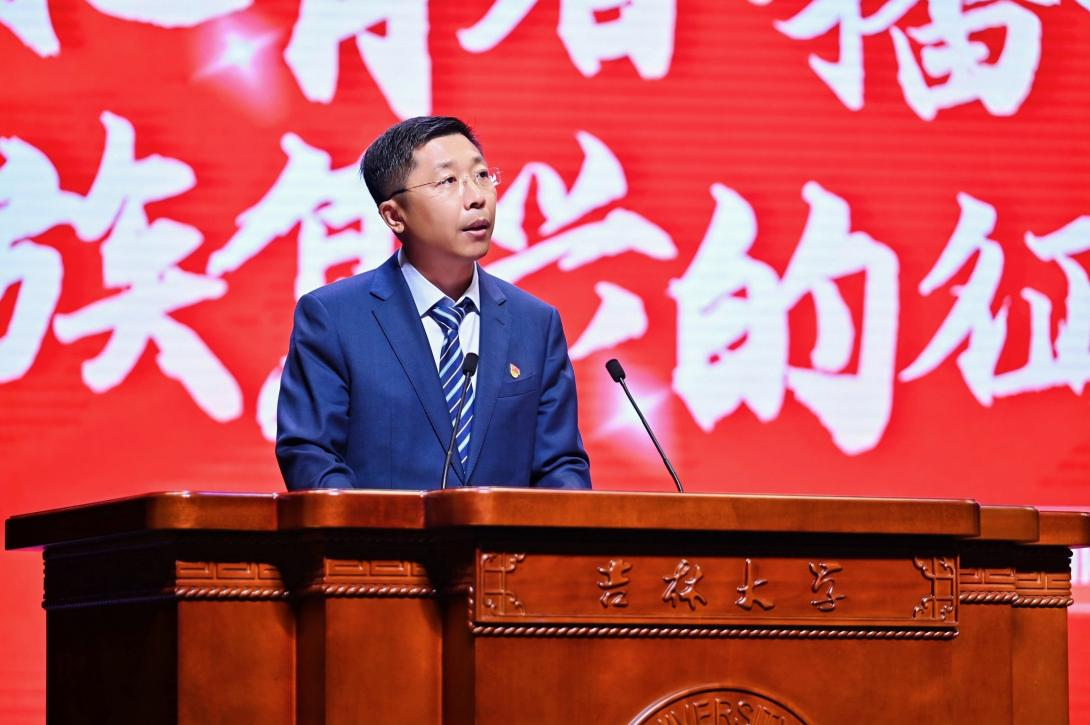 赵军特别提到,这段难忘的求学岁月里,同学们不仅收获了学识,更经历了特殊时期的淬炼。他动情地描绘了疫情期间师生同心抗疫的感人场景—从“千人迁徙”到“云端课堂”,从老师们身兼数职的守护到同学们志愿服务的闪光,这些并肩作战、守望相助的珍贵记忆,共同铸就了充满“商管温度”的青春印记,是同学们未来征途中最宝贵的“神级皮肤”。