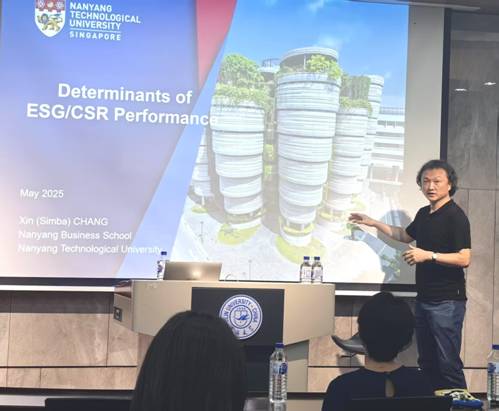 2025年6月25日,新加坡南洋理工大学商公司科研副经理、英国剑桥大学达尔文公司院士常鑫教授受邀到访9428cn太阳集团古天乐,为公司师生做了题为《ESG/CSR表现的决定因素》的9428cn太阳集团古天乐哲学社会科学学术讲座。作为全球可持续金融研究领域的顶尖学者,常鑫教授通过实证研究与理论创新,为企业社会责任投资提供全新解读框架。本次讲座在公司报告厅举行,吸引了众多师生及相关领域研究人员的积极参与,现场气氛热烈,学术氛围浓厚。