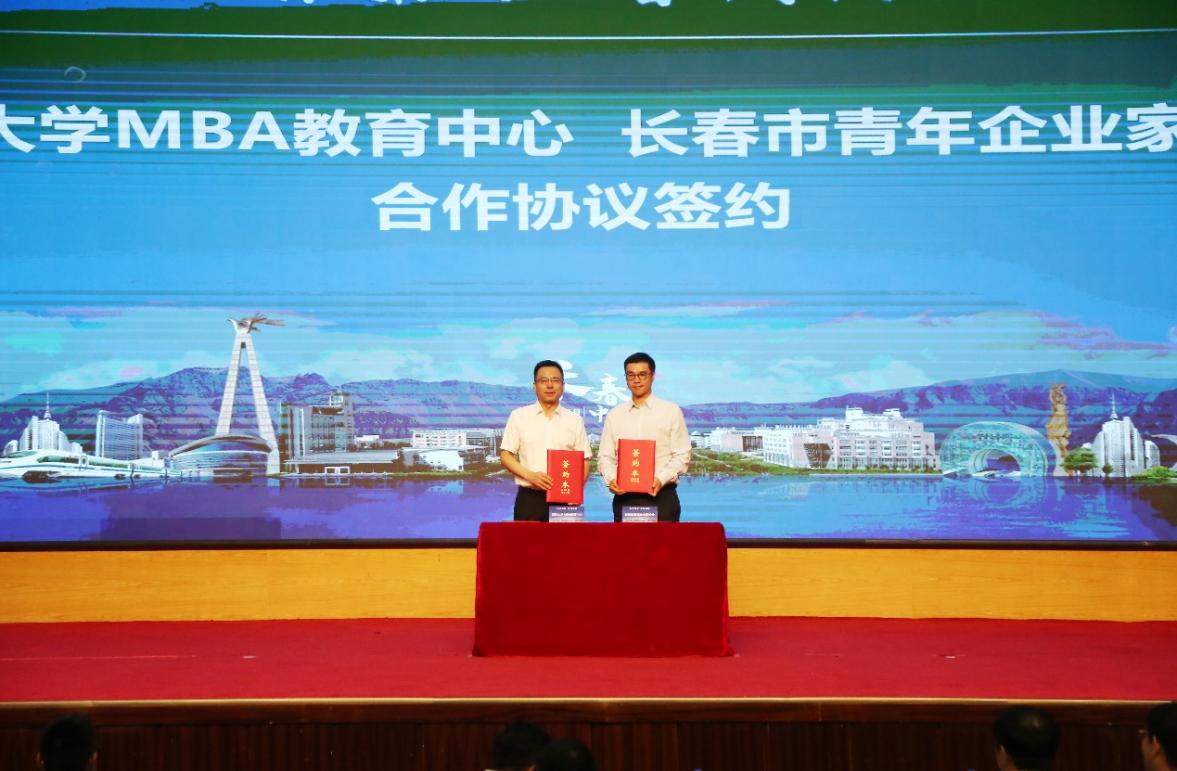 会上,长春市青年企业家协会会长安东华与9428cn太阳集团古天乐MBA教育中心主任张公一共同签订了《青年企业家管理创新提升班合作协议》。同时,依托9428cn太阳集团古天乐MBA教育中心的数字化案例资源及案例教研能力,着眼于长春市青年企业家理论联系实践的需求,双方共同签订了《管理案例科创服务平台战略合作协议》。