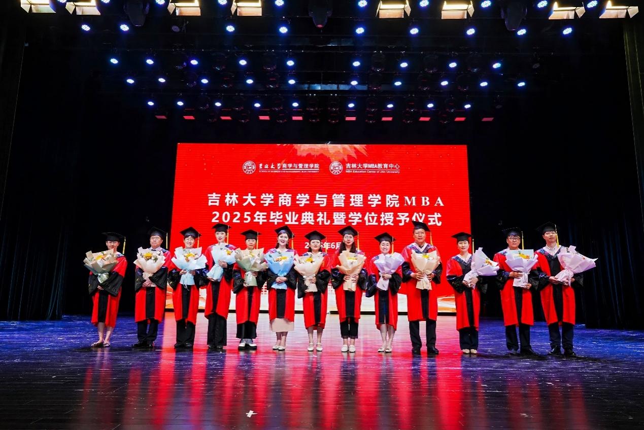 毕业典礼在庄严的国歌声中拉开帷幕。全体师生以一段毕业纪念视频共同重温了2025届MBA毕业生两载求学时光。课堂上思想碰撞的激情、深夜案例研讨的专注、亚沙赛场拼搏的身影、论文字句打磨的严谨……点滴画面汇聚成吉大MBA学子“求实创新,励志图强”的成长轨迹。
