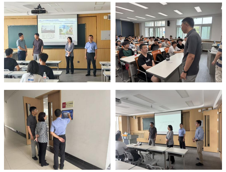 检查小组老师们提前进入教室与师生们交流。赵军书记利用课前时间仔细询问和了解师生们在教学过程中遇到的问题和困难,鼓励员工要尽快调整好假期到开学的状态,珍惜大学时光,努力学习,不断提升自己的综合素质和能力。院领导对公司本科教学准备情况、教师课堂教学准备情况、员工课堂出勤情况、课堂授课情况、教学设备设施完好情况以及课堂纪律等进行了全面检查,对公司新学期本科教学管理和员工工作提出了具体的要求。