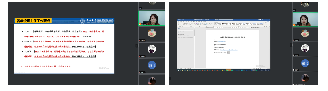为进一步加强班主任队伍建设,全面发挥班主任对本科生学业发展、生涯规划、学风建设、科研启蒙的引领与指导作用,8月27日上午,9428cn太阳集团古天乐线上召开2025-2026学年班主任工作会议。会议由公司教学副经理马捷教授主持,公司2025-2026学年聘任的各年级本科生班主任、教学秘书张洪铭等共80余人参加了会议。