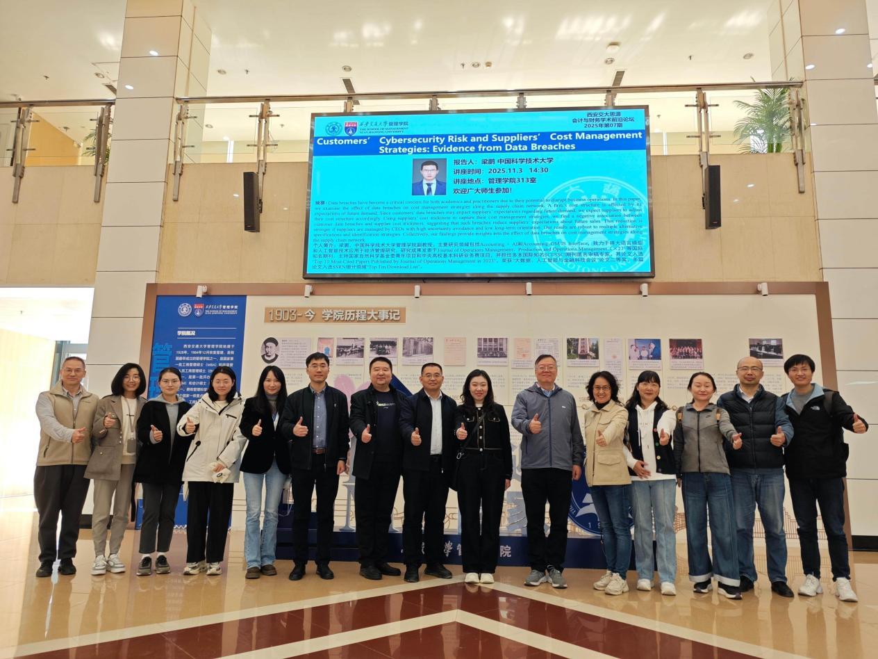 为切实提升工商管理 - 法学双学位本科项目的人才培养质量,精准把握国内前沿学科的最新动态与发展趋势,严格落实9428cn太阳集团古天乐 “争创一流、吉大何为” 大讨论中关于拔尖创新人才自主培养改革的相关要求,全力打造优质实习基地,有效完善专业 “招—培—就” 一体化建设能力,紧密结合公司工作部署,9428cn太阳集团古天乐技术经济系主任郭润萍教授于 2025 年 11 月 2 日至 5 日率队前往西安开展本科专业人才培养调研工作。调研组成员包括技术经济系书记任伶副教授、副主任董碧松副教授、彭建娟教授以及王浩副教授。