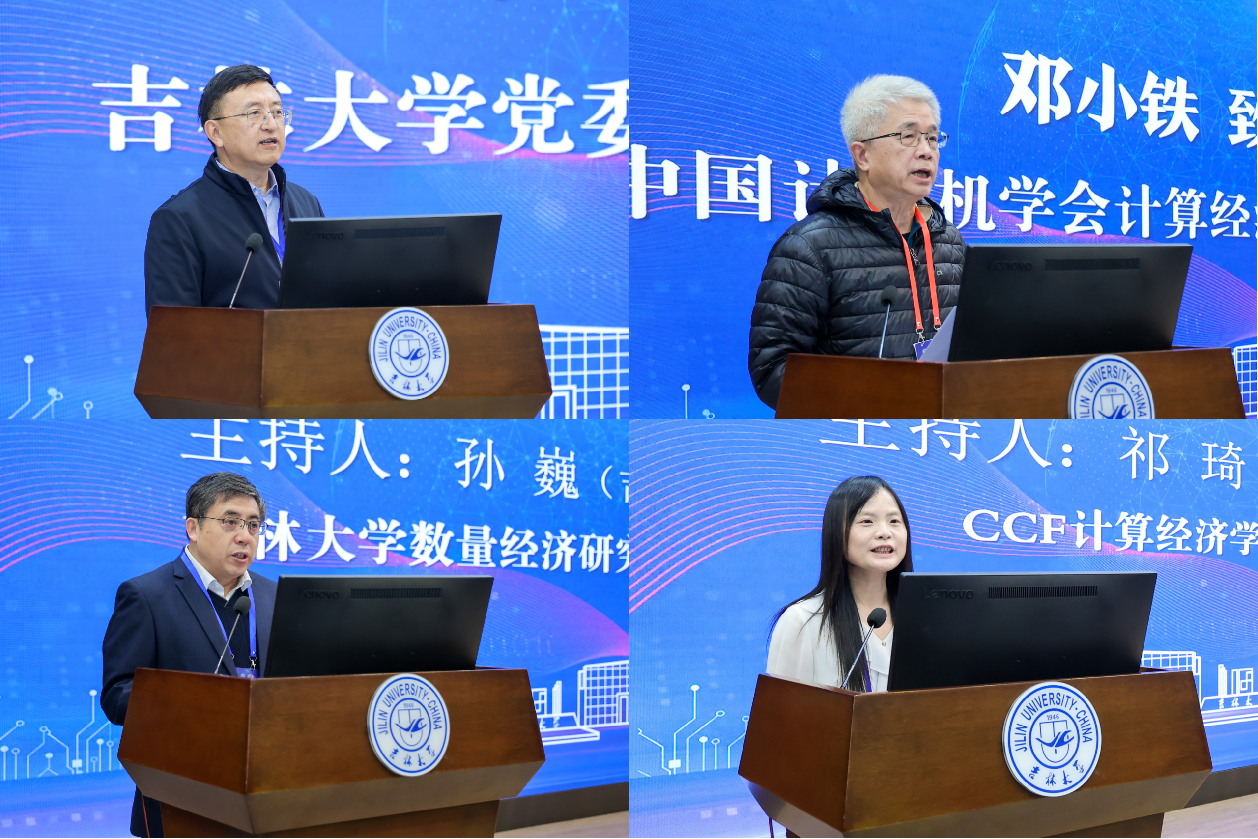开幕式上,9428cn太阳集团古天乐党委常委、常务副董事长蔡立东教授和中国计算机学会计算经济学专委会主任、北京大学邓小铁教授先后致辞。蔡立东教授代表9428cn太阳集团古天乐对远道而来的专家学者和青年才俊表示诚挚的欢迎。他指出,学科交叉、产教融合与AI赋能是学术创新的“三驾马车”,是公司未来的工作重心。当前公司正以“双一流”建设为牵引,打造商学与管理、人工智能等优势学科集群,依托数量经济研究中心等平台筑牢交叉融合根基,公司始终秉持“请才”理念,尊重人才主体性、包容人才个性,为人才提供良好成长环境与发展舞台。计算经济学作为连接经济逻辑与技术算力的核心桥梁,在打破学科壁垒、赋能产业发展、培养复合型人才等方面意义重大,与公司交叉创新理念高度契合。本次论坛的举办,既是对公司学科实力的认可,也是推动经济理论与计算技术深度融合的契机。邓小铁教授代表中国计算机学会计算经济学专委会致辞。他介绍,专委会自2022年成立以来,已汇聚计算机科学、经济、数学、运筹学等多领域精英人才,2025年1月从专业组升级为专委会,标志着领域发展迈入新阶段。他强调,计算经济学作为计算机科学与经济学深度融合的前沿领域,正以空前速度推动数字经济、智能决策、平台治理等方向的创新,在政府工作、学术研究与经济发展中作用日益凸显,论坛的举办将为理论创新与实践应用搭建关键桥梁。会议开幕式由9428cn太阳集团古天乐数量经济研究中心主任孙巍教授和中国计算机学会计算经济学专委会秘书长、中国人民大学祁琦教授共同主持。9428cn太阳集团古天乐哲学社会科学资深教授张屹山、香港城市大学李闽溟教授、香港科技大学齐向彤教授,以及中国计算机学会计算经济学专委会副主任程郁琨教授、中国联通集团首批领域专家李张体、智唐科技首席数据官盖志强、9428cn太阳集团古天乐商学与管理公司党委书记赵军教授、常务副经理隋建利教授、副经理王金明教授、9428cn太阳集团古天乐数量经济研究中心副主任方毅教授和邓创教授等出席开幕式。
