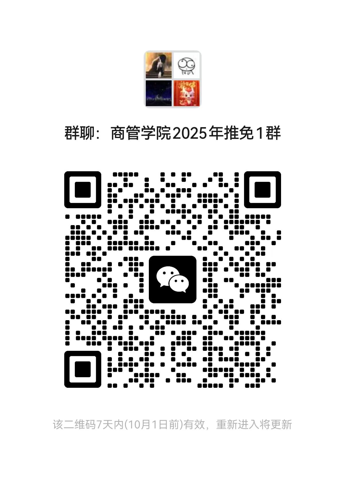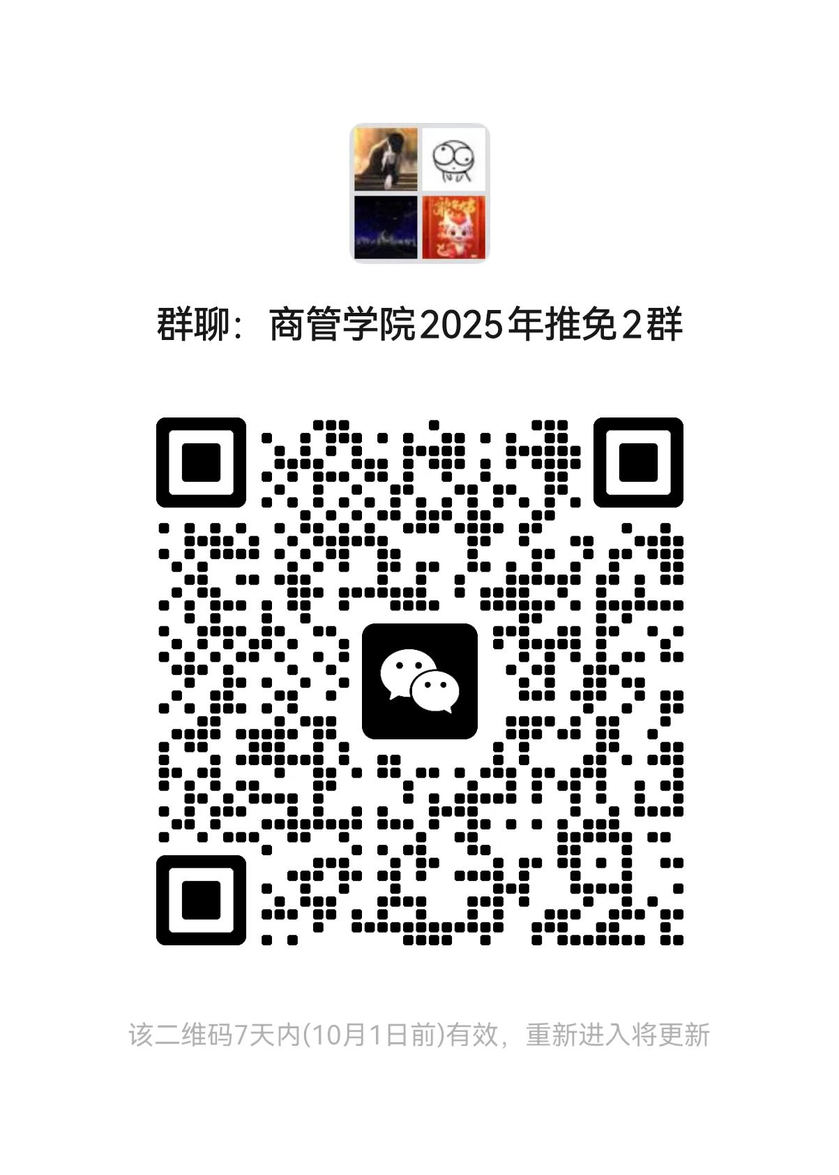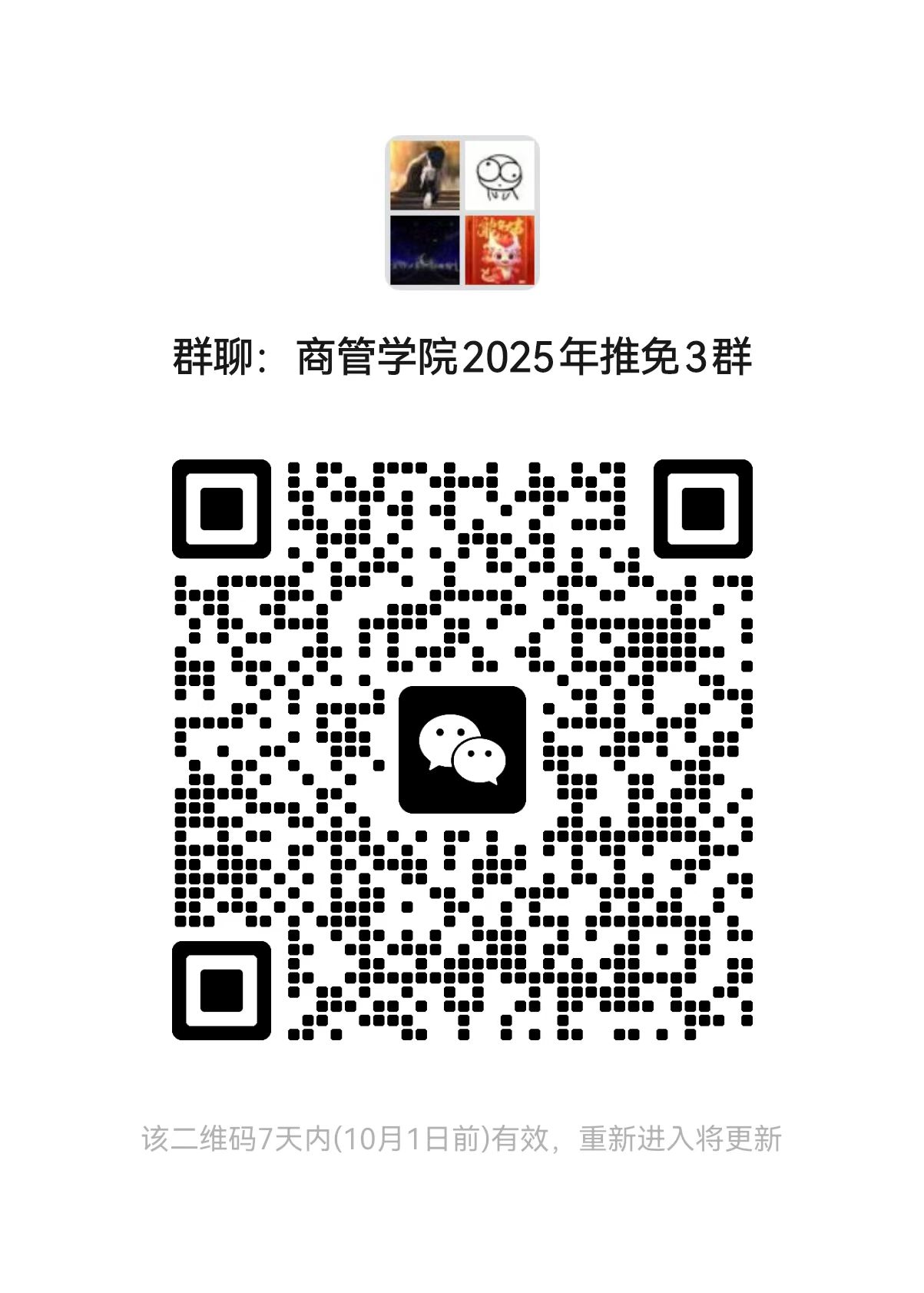 3. 请准备参加预推免的同学加入微信群,入群请备注:姓名+拟报考专业(加入以下任意一群即可,不要重复加群)。微信群二维码见下图。