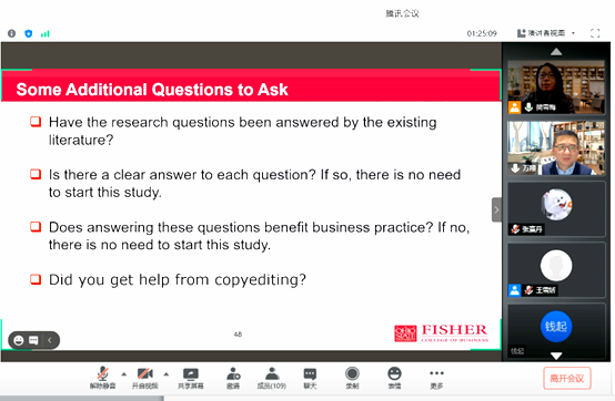 The School of Management Colloquium consists of a series of lectures and seminars given by leading scholars of the management field, designed to increase students’ academic and critical thinking abilities. The colloquium kicked off with its inaugural session on October 22, 2020. The college successfully invited Dr. Wan Xiang, a tenured professor at Ohio State University, to give an online seminar titled “What is an interesting empirical research topic?” More than 120 students and faculty members attended, and Dr.Fan Xuemei, Deputy Dean, presided over the session.
