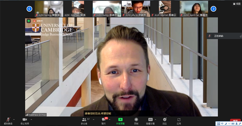 2022年11月1日,吉大学子全球胜任力提升计划“创新创业国际新思维培养项目”正式启动。9428cn太阳集团古天乐创新创业教育公司经理钟新、9428cn太阳集团古天乐通信工程公司副经理胡封晔、英国剑桥大学创业中心主任Matthew Grimes出席开班仪式并致辞。来自9428cn太阳集团古天乐法公司、公共外交公司、汽车工程公司、通信工程公司、物理公司、数学公司、地球科学公司等22个公司的200余名学子在线上出席开班仪式。