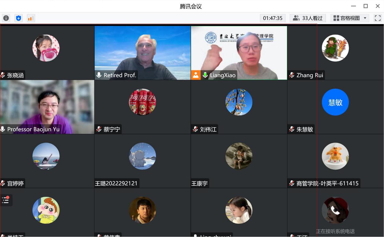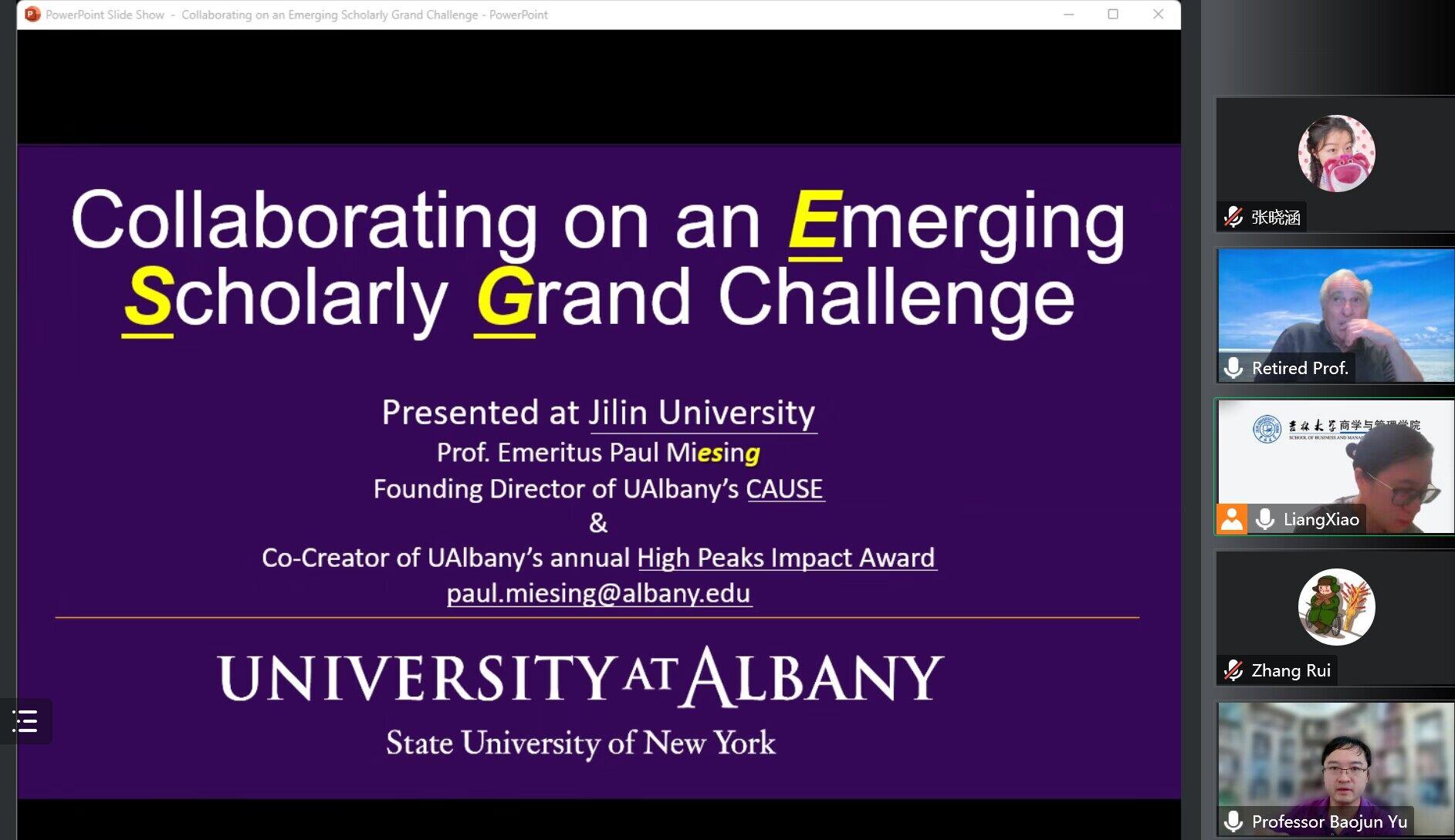 2022年10月11日上午,9428cn太阳集团古天乐管理科学与工程系邀请了美国纽约州立大学奥尔巴尼分校(SUNY at Albany)商公司的荣休教授Paul Miesing为公司的师生进行了一场题目为《Collaborating on an emerging scholarly grand challenge》的学术讲座,讲座通过腾讯会议以线上的形式进行。9428cn太阳集团古天乐管理科学与工程学科的老师和硕博研究生们在线参与了本次讲座。梁潇老师主持了本次会议。