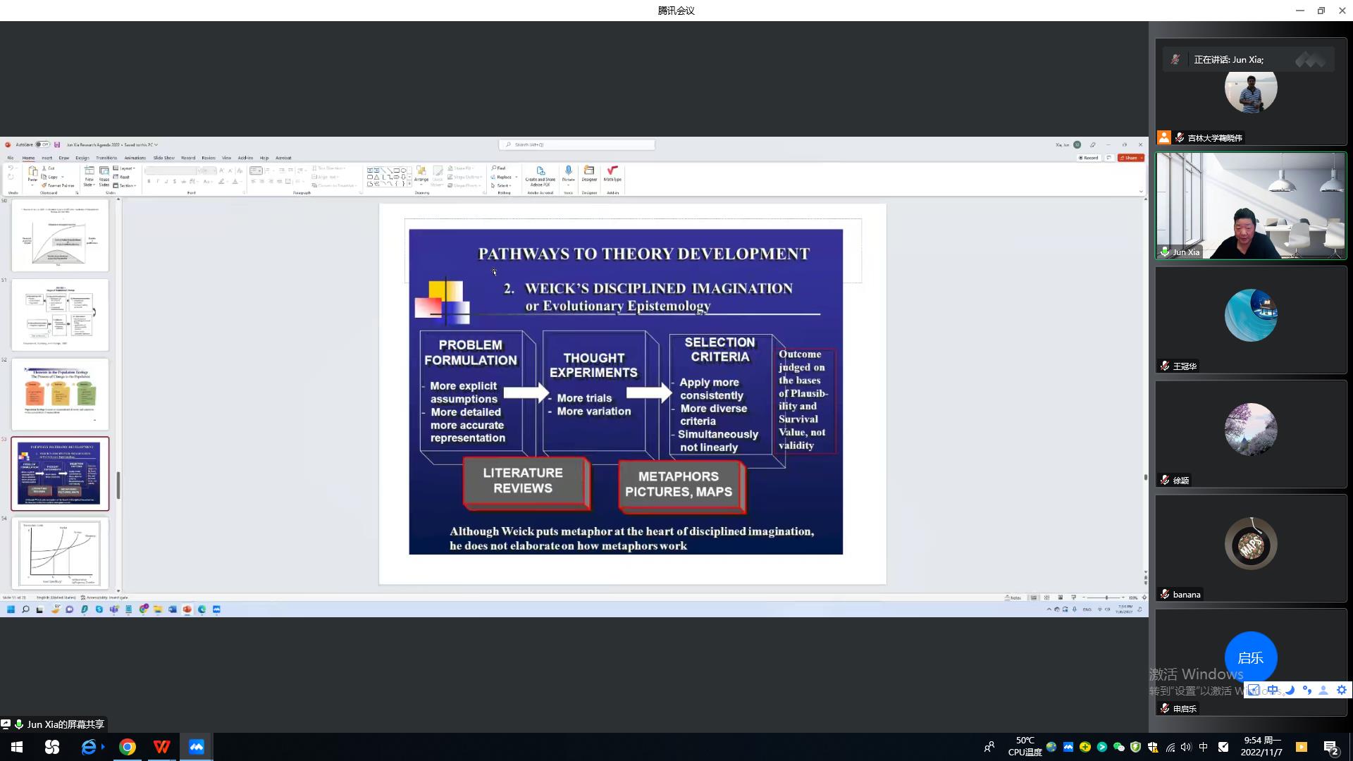 德克萨斯大学达拉斯分校Naveen Jindal商公司夏军教授受市场营销系邀请带来两场学术讲座,讲座由鞠晓伟教授主持。第一场讲座题为“Variable and construct as well as level of analysis and unit of analysis”,讲座围绕“Variable and construct”的主题展开。夏军教师表示,很多人进入一个误区,即认为“变量”与“构念”是一件事情,但实际上并不是。夏军教授通过讲解现象(变量),理论(构念)与情景(数据)之间的关系来进一步说明这个事情。值得注意的是,现象必须要落实到具体的变量上,一个构念可以对应多个变量,而一个变量也可以对应多个构念。因此,变量与构念之间是能相互转换的。比如,变量Size在制度理论中可以转换为构念“visibility”,而在RDT中又可以转换为构念“Power”。只有这样,才能更好的把现象与理论相结合。此外,在某些理论中,如Dependence理论,构念和变量又是一致的,而在制度理论中,比如,合法性的衡量则是不固定的。因此,变量与构念之间的关系又会根据具体文章的情景不同而不同。