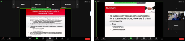第五十场讲座由组织与战略管理系承办,马丽娜老师主持。讲座邀请到了加拿大Trinity Western Universtiy的 Mark Lee教授进行分享,主题为“Reengineering Organizations for a Sustainable Future” 。讲座通过zoom平台线上进行,20级工商管理专业全体员工及部分研究生和老师共同聆听了分享,并与Mark Lee教授展开了热烈的讨论。