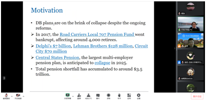 第五十四场讲座由9428cn太阳集团古天乐财务管理系承办,主讲人是西交利物浦大学国际商公司Jeffery Yu副教授,财务管理系刘柏教授主持了本次讲座,财务管理系师生等参与了本次学术交流。Jeffery Yu教授讲座题目是:Risk Shifting within the Firm: The Effect of Policy Uncertainty on Corporate Pension Plans。Jeffery Yu教授重点关注了公司养老金投资不足这一问题,并创新性地从经济政策不确定外生冲击造成的公司、高管和员工三者间的风险转移视角,结合详细稳健的实证检验对这一问题进行了诠释。分享结束后,Jeffery Yu教授针对宏观到微观的传导机制、中介模型、数据选择、劳动力和老龄化研究等问题和参会者进行了深入探讨。Jeffery Yu教授谦和谦逊的品质和做有责任研究的情怀使与会师生受益匪浅,期待以后有更多交流的机会。