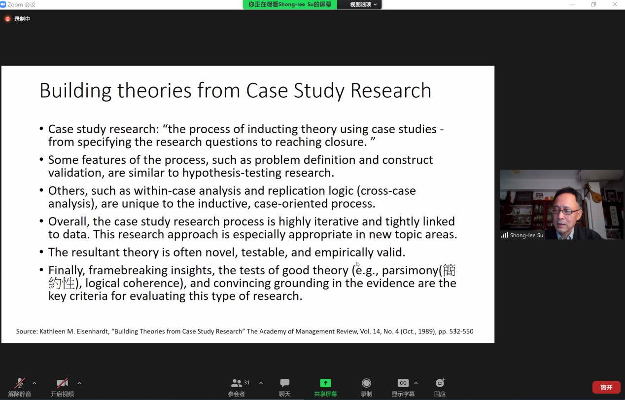 苏雄义教授的报告主要分为两部分:案例研究方法和物流与供应链管理领域的案例研究。第一部分,苏教授从如何利用案例研究生成理论出发,系统介绍了案例研究方法的哲学基础、数据收集、收据分析、理论生成等步骤。第二部分,苏教授首先介绍了物流与供应链领域国际期刊发表案例研究论文的概况,然后讲解了物流与供应链领域案例研究的框架和发表动态。此次学术报告让我们对物流与供应链领域的从事案例研究及国际期刊发表有了系统的了解,在整个报告过程中,全场师生认真聆听并与苏雄义教授互动交流。此次学术报告的举办对公司相关学科开展案例研究、提升科研水平和促进学科发展具有非常积极的意义,未来苏教授还会结合具体实例为我们详细讲解不同类型的案例研究。